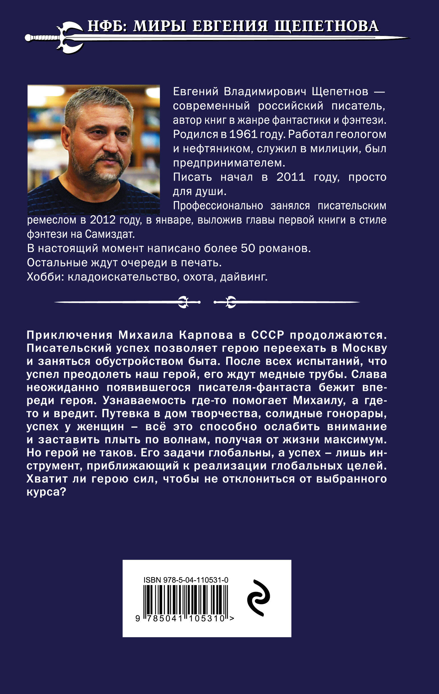 Продолжение приключений полюбившегося читателям героя - писателя-фантаста Михаила Карпова, перенесшегося из XXI века в СССР 70-х годов. Автор хорошо знает эпоху и очень точно описывает быт. Главный герой должен пройти испытание медными трубами, ведь теперь он известен всему Союзу и даже за его пределами. Не помешает ли слава его глобальным целям?| Издательство | ООО "Издательство "Эксмо" |