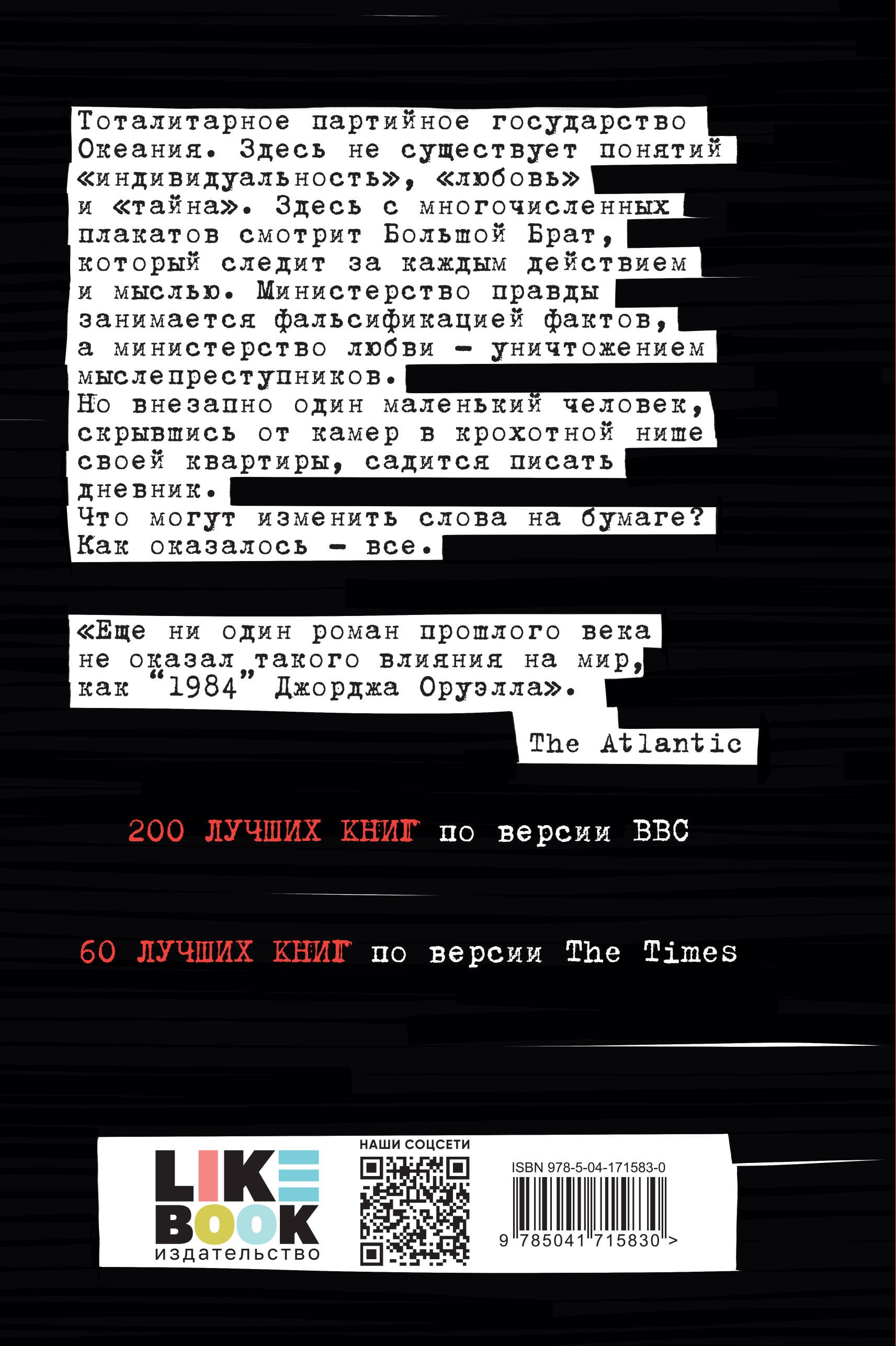 «1984» - роман-предупреждение об опасности тоталитаризма, одна из самых известных антиутопий XX века, стоящая в одном ряду с «Мы» Замятина, «О дивный новый мир» Хаксли и «451° по Фаренгейту» Брэдбери. Роман вошел в список 200 лучших книг по версии BBC, а также 60 лучших книг за последние 60 лет по версии The Times. Это издание отличается своим великолепным художественным решением: концептуальная обложка и цветной обрез, на котором отпечатаны известные слоганы книги, ставшие культовыми за пределами истории.