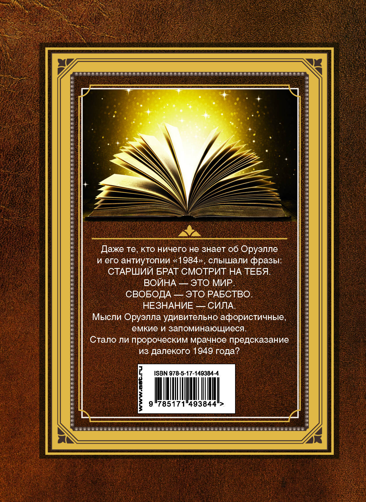Роман "1984" об опасности тоталитаризма стал одной из самых известных антиутопий XX века, которая стоит в одном ряду с "Мы" Замятина, "О дивный новый мир" Хаксли и "451° по Фаренгейту" Брэдбери. Что будет, если в правящих кругах распространятся идеи фашизма и диктатуры? Каким станет общественный уклад, если власть потребует неуклонного подчинения? К какой катастрофе приведет подобный режим? Эта книга давно уже разошлась на цитаты и афоризмы, которые вошли в современную речь людей неравнодушных к тому, что происходит сейчас и возможно будет происходить в будущем.| Издательство | АСТ |