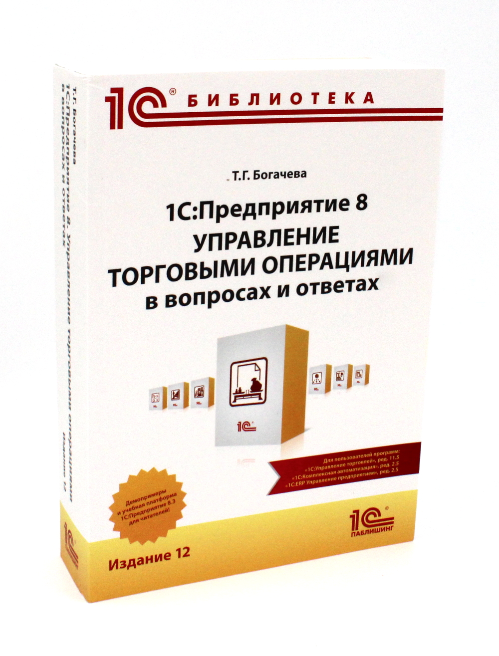 Комплект из 3 книг. «1С. Бухгалтерия 8. Учебная версия»: Данная книга является пособием по программному продукту «1С:Бухгалтерия 8. Официальная учебная версия» предназначена для освоения программы «1С:Бухгалтерия 8» и ее специальных поставок - программ «1С:Предприниматель 8», «1С:Упрощенка 8» и «1С:БизнесСтарт». В пособии рассматриваются порядок установки программы «1С:Бухгалтерия 8», организация начала работы с программой, вопросы методики ведения учета - от ввода первичных документов и бухгалтерских операций до получения аналитических отчетов и подготовки бухгалтерской и налоговой отчетности. Большое внимание уделяется общим правилам работы пользователя в среде «1С:Предприятие 8», рассматриваются сервисные возможности программы. «1С:Предприятие 8. Управление торговыми операциями в вопросах и ответах»: В книге рассматриваются вопросы начального заполнения информационной базы и регистрации торговых операций в прикладных решениях фирмы «1С»: «1С:Управление торговлей 8», ред. 11.5, «1С:Комплексная автоматизация», ред. 2.5, «1С:ERP Управление предприятием», ред. 2.5. Оформление торговых операций продемонстрировано на конкретных примерах, основанных на данных, которые включены в демонстрационные базы прикладных решений. Информация в книге представлена в виде ответов на вопросы пользователей, которые могут возникать в процессе освоения программы или при реальной работе. «Настольная книга по оплате труда и ее расчету в "1С:Зарплата и управление персоналом 8"»: В пособии рассматриваются вопросы кадрового учета, начисления вознаграждений и иных выплат по трудовым договорам и договорам гражданско-правового характера, удержаний из начисленных доходов, начисления страховых взносов и пособий по социальному обеспечению в соответствии с действующим законодательством.| Издательство | 1С-Паблишинг |