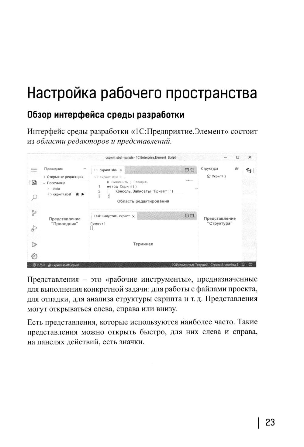 Выпущена новая книга для школьников 10-11 классов и всех, кто хочет научиться программировать самостоятельно используя современный и доступный язык программирования - «1С:Элемент». Язык «1С:Элемент» это кросс-платформенный язык программирования высокого уровня со статической типизацией, стандартной библиотекой и элементами функционального программирования. Подробнее о языке lang.1c.ru. Этот язык, будучи изначально разработан как встроенный язык технологии «1С:Предприятие.Элемент», расширяющей возможности платформы «1С:Предприятие», в современном своей версии приобретает качества универсального языка программирования, что позволяет предложить его для изучения школьникам. В данном случае обучение ведется на специальной локальной версии «1С:Предприятие.Элемент Скрипт». Скачать эту версию можно на сайте lang.1c.ru. Материал книги структурирован так, что подойдет и для новичков и для тех, кто имеет начальные знания в программировании (не обязательно 1С). Книга пошагово вводит читателя в мир программирования - от базовых понятий до прикладных задач. Изложение построено от простых программ и базовых конструкций к сложным типам данных и современным технологиям. В издании предложены теоретические объяснения, практические задания с решениями и справочные разделы для быстрого поиска информации. Это отличный старт для тех, кто хочет сделать первые шаги в IT-разработке.| Издательство | 1С-Паблишинг |
