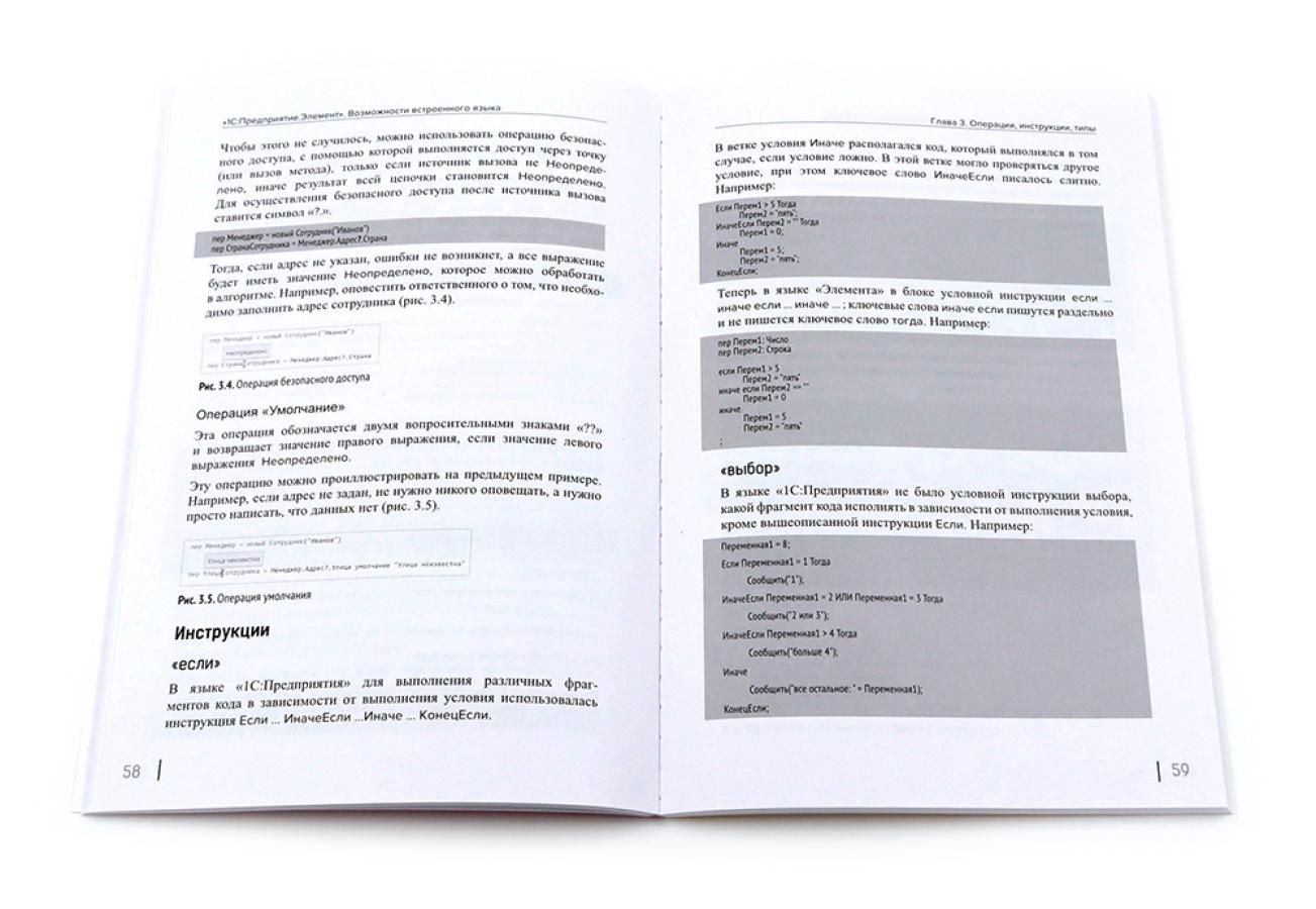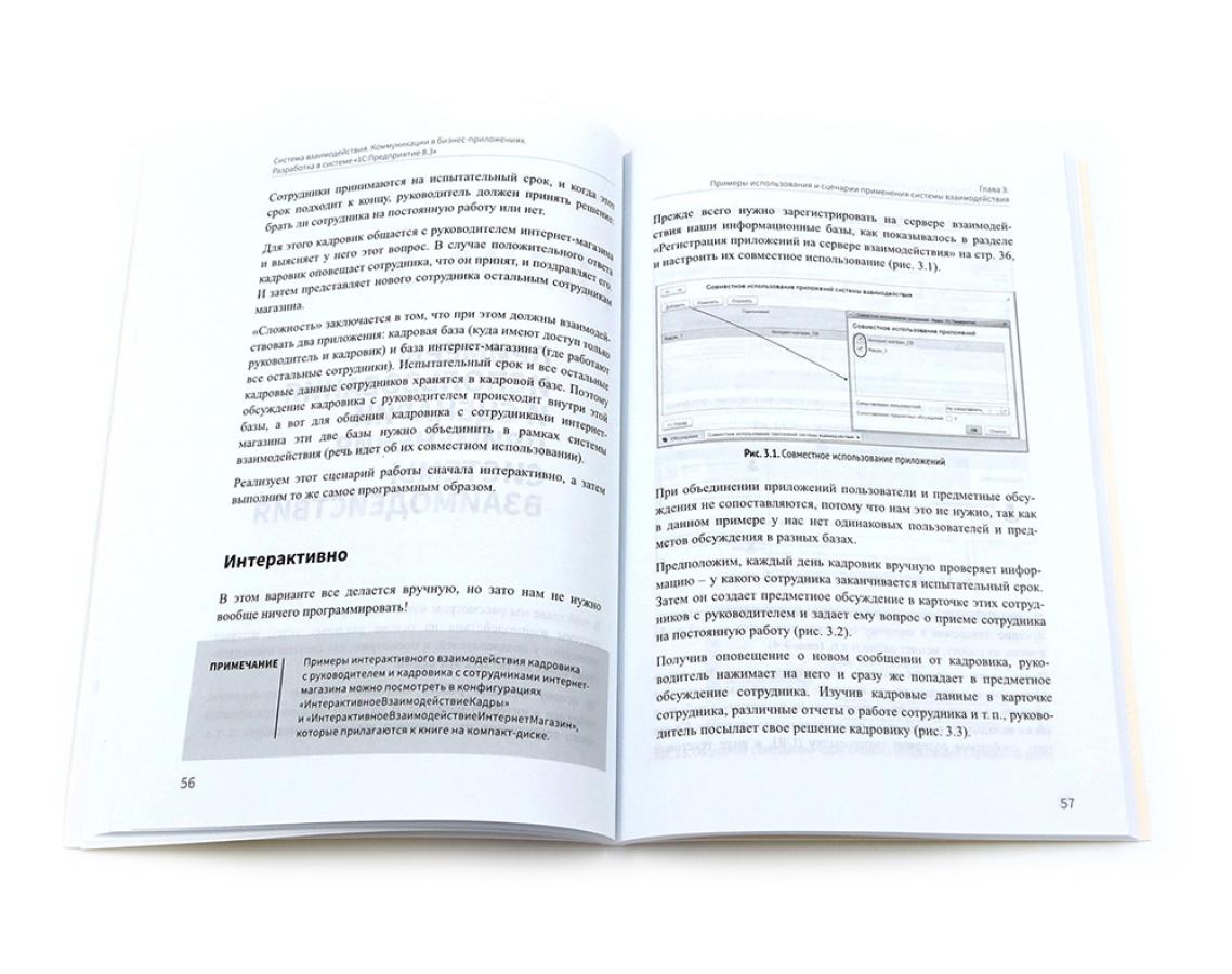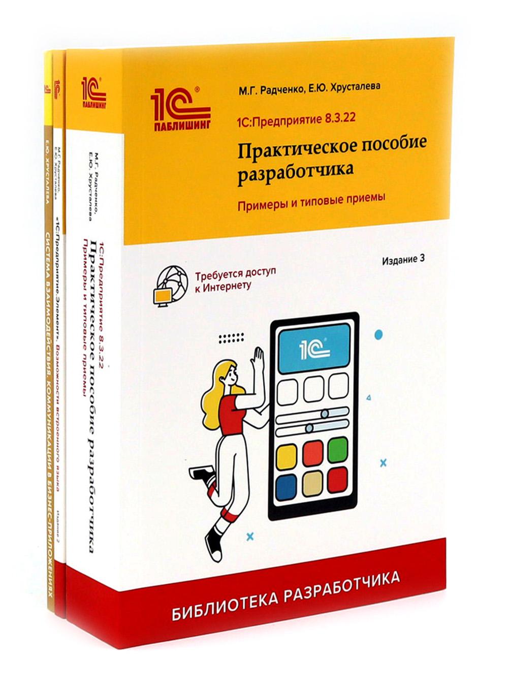Комплект содержит книги. «1С:Предприятие 8.3. Практическое пособие разработчика. Примеры и типовые приемы» Книга позволяет быстро освоить приемы разработки и модификации прикладных решений на платформе «1С:Предприятие 8.3». На примере создания реального прикладного решения показана структура различных объектов системы, их назначение и методика использования. Приведены процедуры на встроенном языке, в том числе с применением языка запросов, которые снабжены подробными комментариями. Книга может быть использована и как практическое руководство, и как справочное пособие. Рассматриваемое в книге прикладное решение учитывает накопленный опыт разработки в системе «1С:Предприятие 8» и демонстрирует многие новые возможности и механизмы, предоставляемые версией 8.3. Материал рассчитан на начинающих разработчиков, незнакомых с системой «1С:Предприятие 8». Для создания демонстрационных примеров использована версия 8.3.22.1709 платформы «1С:Предприятис 8». «1С:Предприятие. Элемент: возможности встроенного языка» Эта книга адресована специалистам, разрабатывающим прикладные решения на платформе «1С:Предприятие 8». Она содержит сжатое описание особенностей языка разработки, который используется в технологии «1С:Предприятие.Элемент». Основная цель издания - помочь максимально быстро начать разработку на этом языке, овладев новыми возможностями, подходами и не упустив при этом ничего важного. Книга содержит значительное количество коротких и простых примеров, которые позволят быстрее и легче понять особенности языка. Для создания примеров использовалась версия 8.0 технологии «1С:Предприятие. Элемент». «Система взаимодействия. Коммуникации в бизнес-приложениях. Разработка в системе "1С: Предприятие 8.3"» Книга адресована специалистам, имеющим опыт разработки на платформе «1С:Предприятие». С ее помощью можно освоить новый платформенный механизм - система взаимодействия. Система взаимодействия позволяет реализовать живое общение прикладного решения с пользователями, а также пользователей одного или разных прикладных решений между собой. Причем такая коммуникация может быть привязана к выполнению как конкретных бизнес-задач, так и к обсуждению конкретных объектов, работа с которыми ведется в решении. Основные возможности этого механизма можно использовать без программирования, более сложные задачи реализуются посредством разработки с помощью встроенного языка «1С:Предприятия». В книге рассмотрены разные сценарии применения системы взаимодействия. Один из примеров описывает взаимодействие пользователей друг с другом, которое можно выполнять «из коробки» без программных доработок. Другой пример показывает, как организовать взаимодействие пользователей по определенному алгоритму, который описывается на встроенном языке. Третий пример демонстрирует разработку «кадрового помощника» - робота, который отвечает на вопросы пользователей. Также в книге рассматриваются два примера, в которых система взаимодействия используется для осуществления коммуникации по инициативе серверной части «1С:Предприятия». Первый пример - программирование алгоритма, реализующего функцию оповещения клиентского приложения о ходе выполнения длительной операции на сервере. Второй - программное формирование оповещений сотрудников об изменении с
