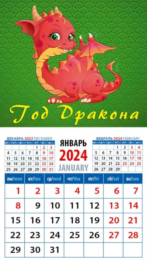 2024 Календарь Год дракона