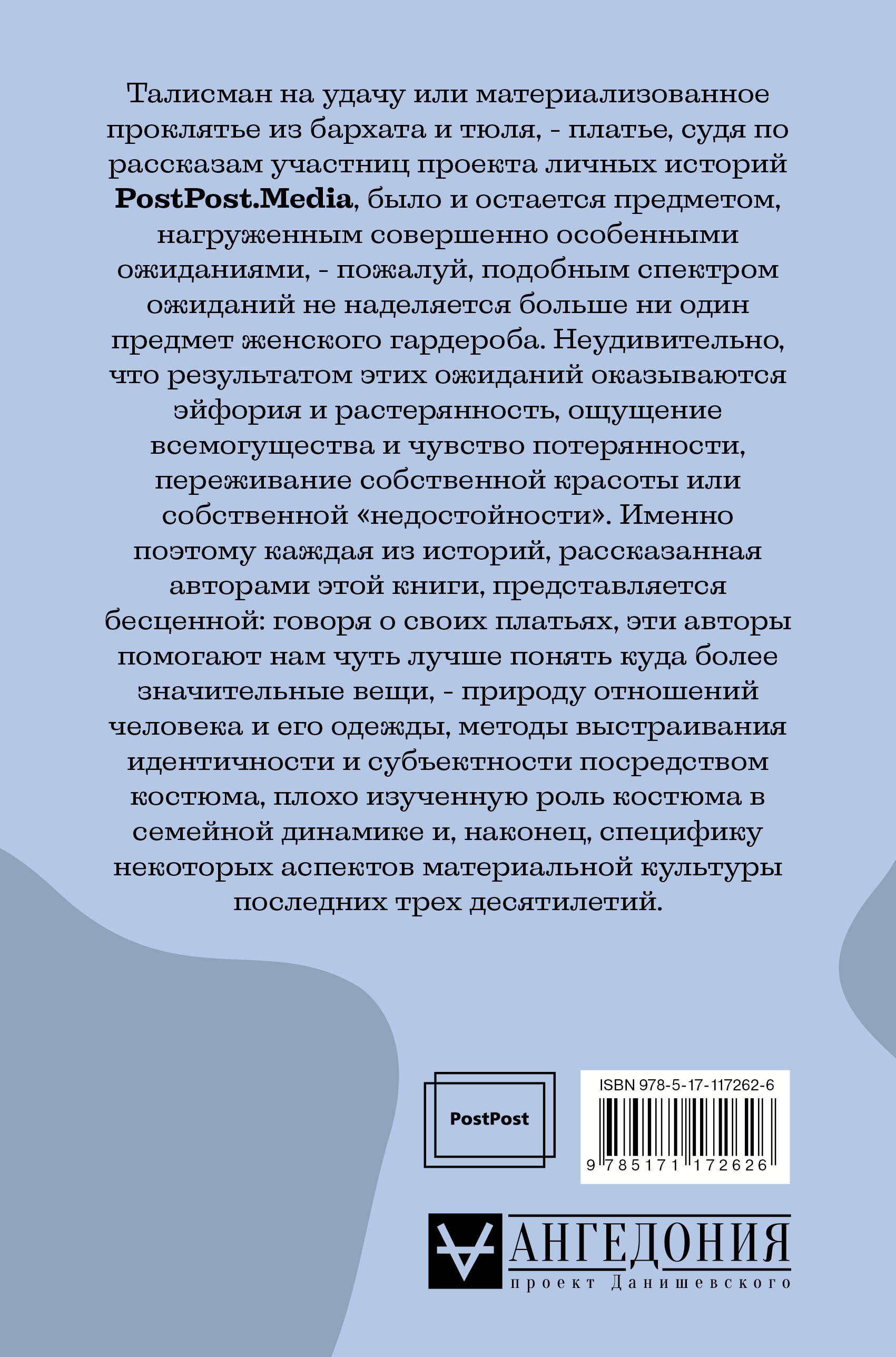Cерия PostPost.Media возникла благодаря одноименному проекту писательницы Линор Горалик. В первой книге серии собраны частные истории участников проекта, связанные с платьями. Смешные, поучительные, трогательные и драматичные -- как и истории по другим темам проекта, которые скоро тоже выйдут в виде книг.| Издательство | ИЗДАТЕЛЬСТВО "АСТ" |