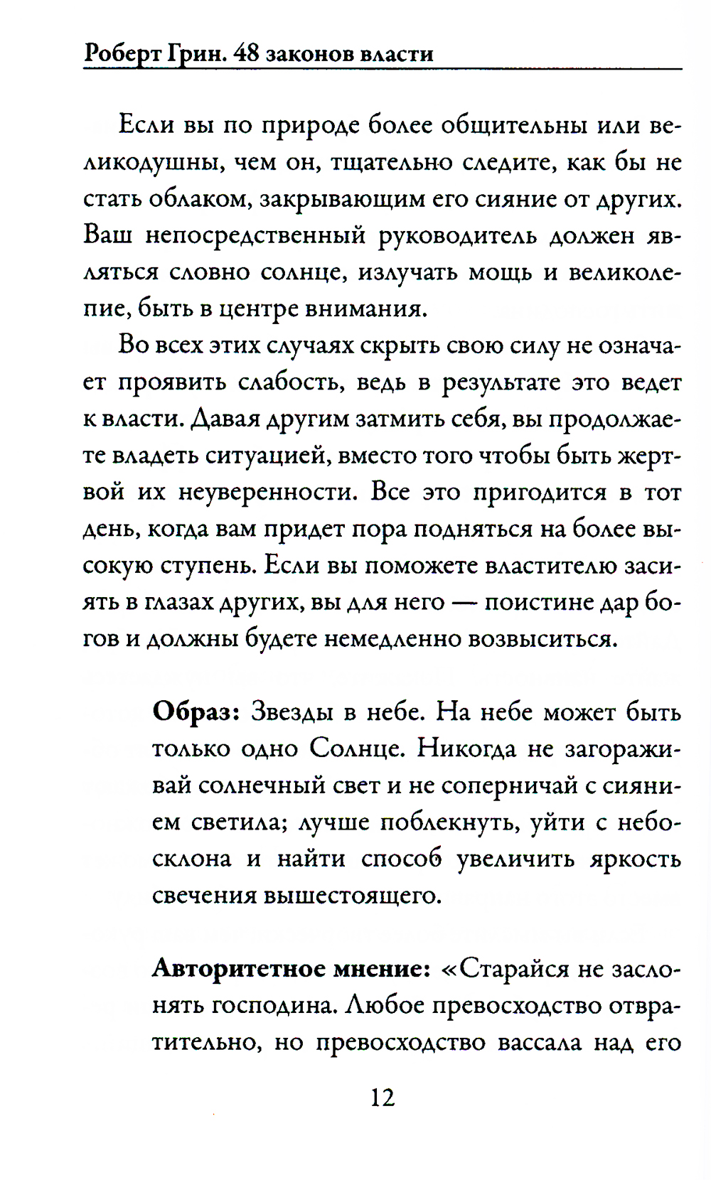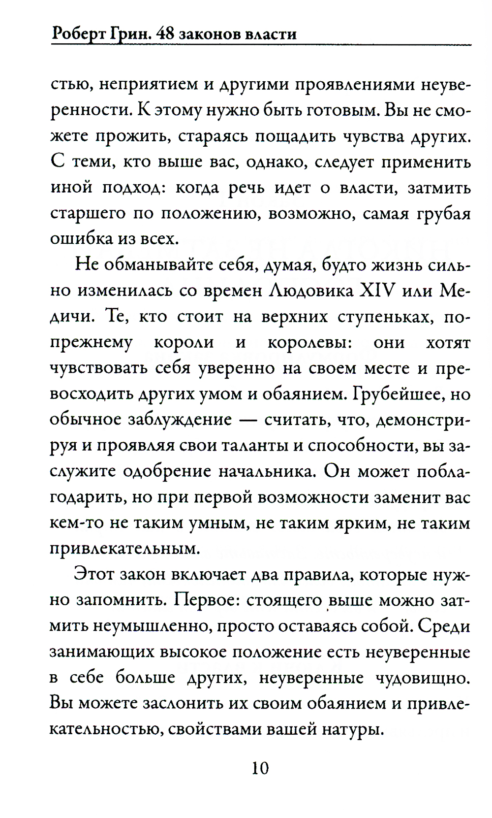 Комплект из 3 книг: «24 закона обольщения для достижения власти» Обольщение - крайнее выражение власти. Те, кто ему поддается и уступает, делают это не по принуждению, а охотно и с радостью. Женщинам нравится обольщать мужчин, мужчинам - женщин; писатели обольщают читателей, актеры - зрителей, продавцы -покупателей, политики обольщают электорат, то есть нас с вами. Участников этой восхитительной, волнующей и зачастую жесткой игры можно перечислять до бесконечности. Однако лишь немногие в совершенстве владеют этим искусством. Как попасть в число избранных? Тактика и стратегия обольщения в книге искушенного знатока человеческой психологии и автора нашумевшего бестселлера «48 законов власти» Роберта Грина. «33 стратегии войны» Краткая версия знаменитого бестселлера! Война и способы ее ведения обладают непреклонной, неумолимой логикой: если вы чего-то хотите или к чему-то стремитесь, то должны быть готовы сразиться за это. Владение стратегическим искусством войны сделает вашу жизнь более спокойной, мирной и плодотворной, ведь вы будете знать, каковы правила игры, и сумеете одерживать победы, не прибегая к насилию. «33 стратегии войны» от Роберта Грина, искушенного знатока человеческой психологии и автора мирового бестселлера «48 законов власти», помогут вам найти выход из любого сложного положения и принять правильное решение. Войну - как и любой другой конфликт - ведут и выигрывают благодаря стратегическому искусству. «48 законов власти» Это самая аморальная, скандальная, циничная... и правдивая книга о власти. Отныне, познав ее жесткие и жестокие законы, вы без труда распознаете то, что стоит за теми или иными словами и поступками «маленьких» начальников и сильных мира сего, то, что так тщательно они пытаются скрыть. Роберт Грин - американский автор литературы о психологии и механизме функционирования власти в обществе и политике, а также об особенностях стратегического мышления и законах обольщения. «48 законов власти» - настольная книга для тех, кто желает освоить науку управления людьми, безошибочно использовать их слабости для достижения собственного могущества.| Издательство | Рипол Классик |