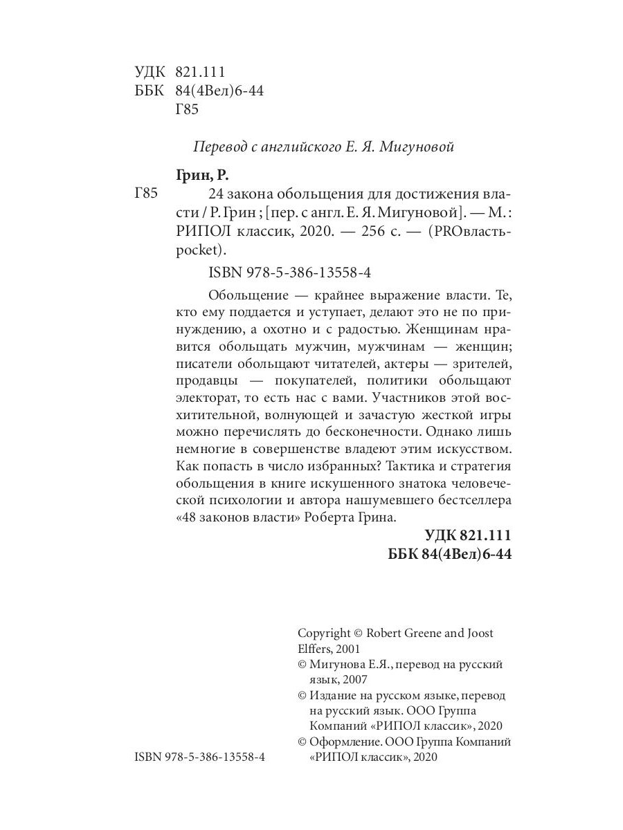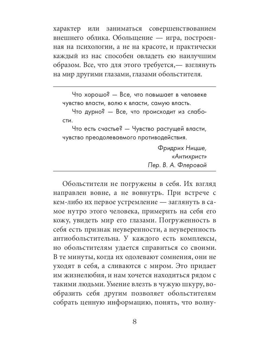Обольщение - крайнее выражение власти. Те, кто ему поддается и уступает, делают это не по принуждению, а охотно и с радостью. Женщинам нравится обольщать мужчин, мужчинам - женщин; писатели обольщают читателей, актеры - зрителей, продавцы - покупателей, политики обольщают электорат, то есть нас с вами. Участников этой восхитительной, волнующей и зачастую жесткой игры можно перечислять до бесконечности. Однако лишь немногие в совершенстве владеют этим искусством. Как попасть в число избранных? Тактика и стратегия обольщения в книге искушенного знатока человеческой психологии и автора нашумевшего бестселлера «48 законов власти» Роберта Грина.| Издательство | Рипол Классик |