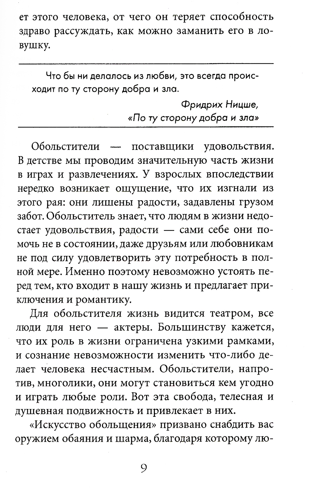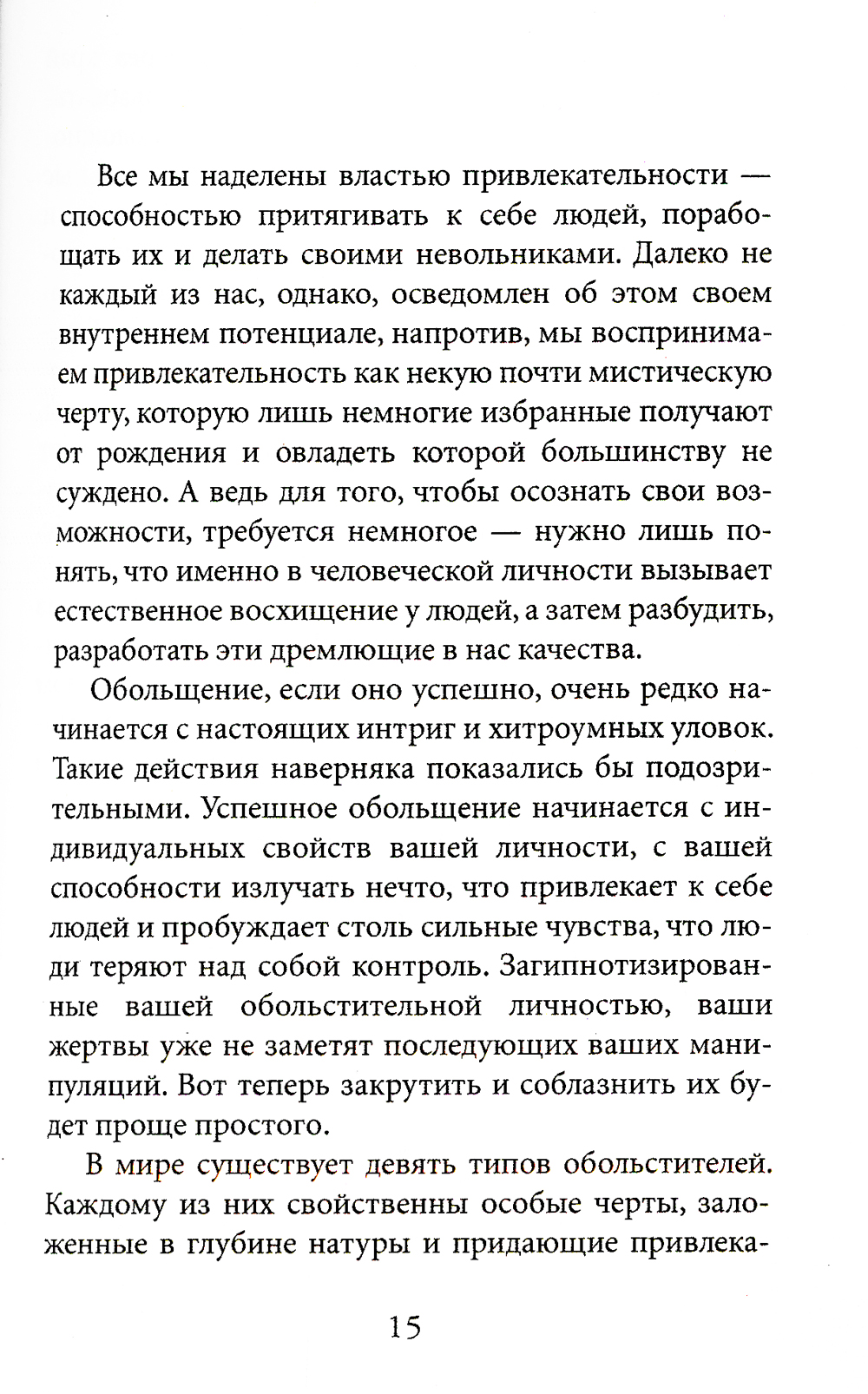 Обольщение - крайнее выражение власти. Те, кто ему поддается и уступает, делают это не по принуждению, а охотно и с радостью. Женщинам нравится обольщать мужчин, мужчинам - женщин; писатели обольщают читателей, актеры - зрителей, продавцы покупателей, политики обольщают электорат, то есть нас с вами. Участников этой восхитительной, волнующей и зачастую жесткой игры можно перечислять до бесконечности. Однако лишь немногие в совершенстве владеют этим искусством. Как попасть в число избранных? Тактика и стратегия обольщения в книге искушенного знатока человеческой психологии и автора нашумевшего бестселлера «48 законов власти» Роберта Грина.| Издательство | Рипол Классик |