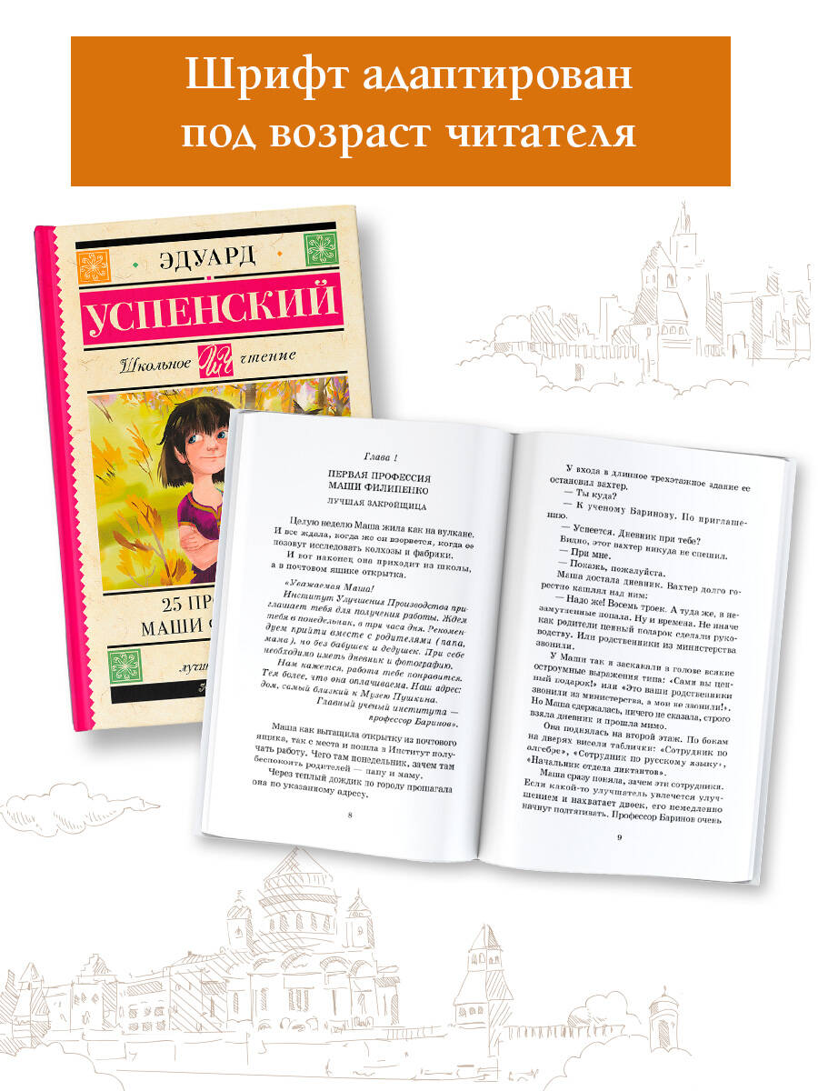 Захватывающая и остроумная повесть классика детской литературы, Эдуарда Успенского! Однажды в школу, где учится Маша Филипенко, приходит человек из Института Улучшения, чтобы найти помощника для решения взрослых задач... Что же из этого выйдет? Расскажет эта веселая книжка, которая отлично подойдёт как для семейного, так и для самостоятельного чтения. Фирменный авторский юмор Успенского, лёгкий слог, узнаваемые реалии и весёлые диалоги - от этой истории просто невозможно оторваться! Книга поможет родителям лучше понять своего ребёнка, а ребёнку - понять мир взрослых. В серию включены лучшие произведения отечественной и зарубежной литературы, входящие в школьную программу с 1 по 11 класс и в списки дошкольного чтения. Книги в твердом переплёте сделают знакомство с литературой легким и увлекательным. Серия, которая не ударит по семейному бюджету и поможет юному читателю расти нравственно и интеллектуально!| Издательство | АСТ |