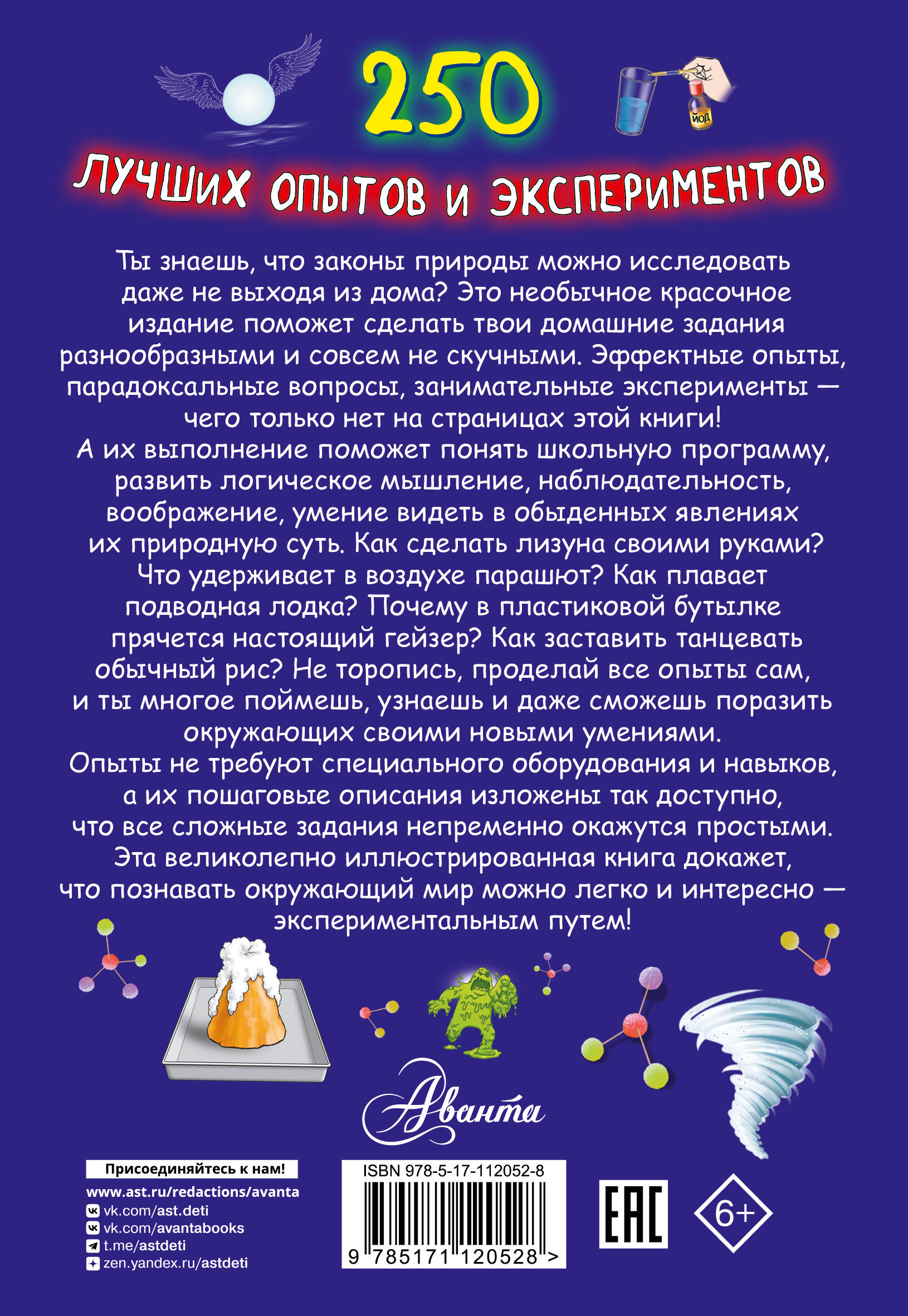 Ты знаешь, что законы природы можно исследовать даже не выходя из дома? Это необычное красочное издание поможет сделать твои домашние задания разнообразными и совсем не скучными. Эффектные опыты, парадоксальные вопросы, занимательные эксперименты - чего только нет на страницах этой книги! А их выполнение поможет понять школьную программу, развить логическое мышление, наблюдательность, воображение, умение видеть в обыденных явлениях их природную суть. Как сделать лизуна своими руками? Что удерживает в воздухе парашют? Как плавает подводная лодка? Почему в пластиковой бутылке прячется настоящий гейзер? Как заставить танцевать обычный рис? Не торопись, проделай все опыты сам, и ты многое поймешь, узнаешь и даже сможешь поразить окружающих своими новыми умениями. Опыты не требуют специального оборудования и навыков, а их пошаговые описания изложены так доступно, что все сложные задания непременно окажутся простыми. Эта великолепно иллюстрированная книга докажет, что познавать окружающий мир можно легко и интересно - экспериментальным путем!