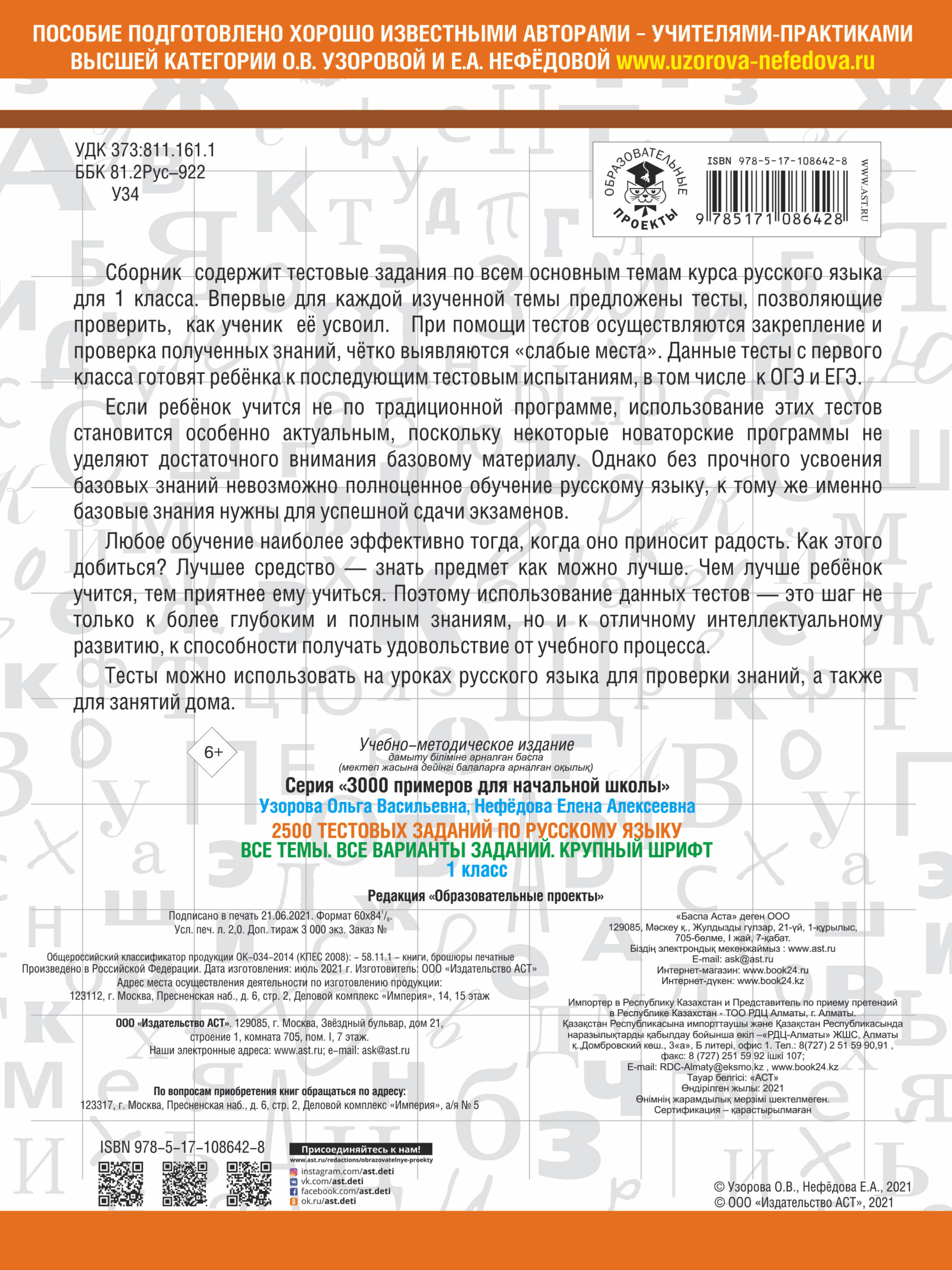 Аннотация: 2500 тестовых заданий по русскому языку. 1 класс