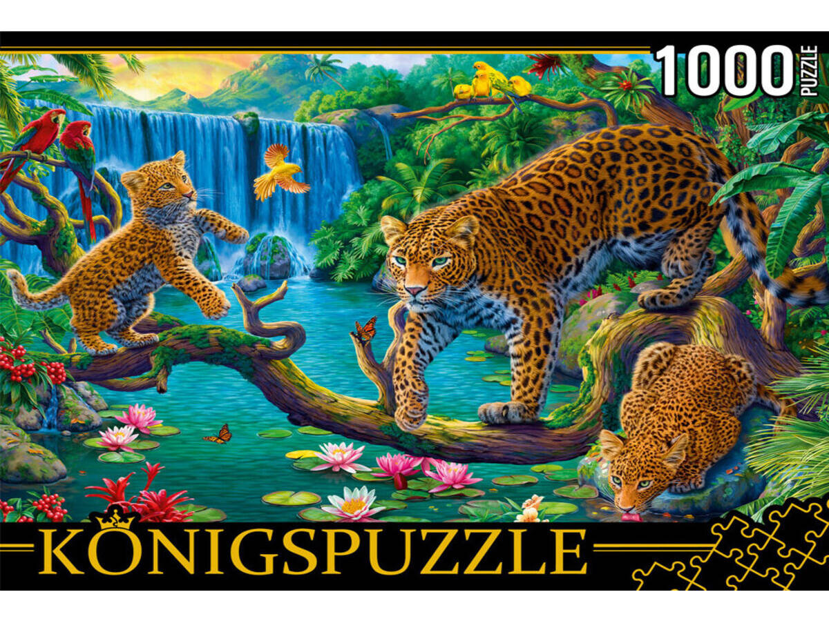 26. Konigspuzzle. ПАЗЛЫ 1000 элементов. ФK1000-6634 ЛЕОПАРДЫ У ВОДОПАДА