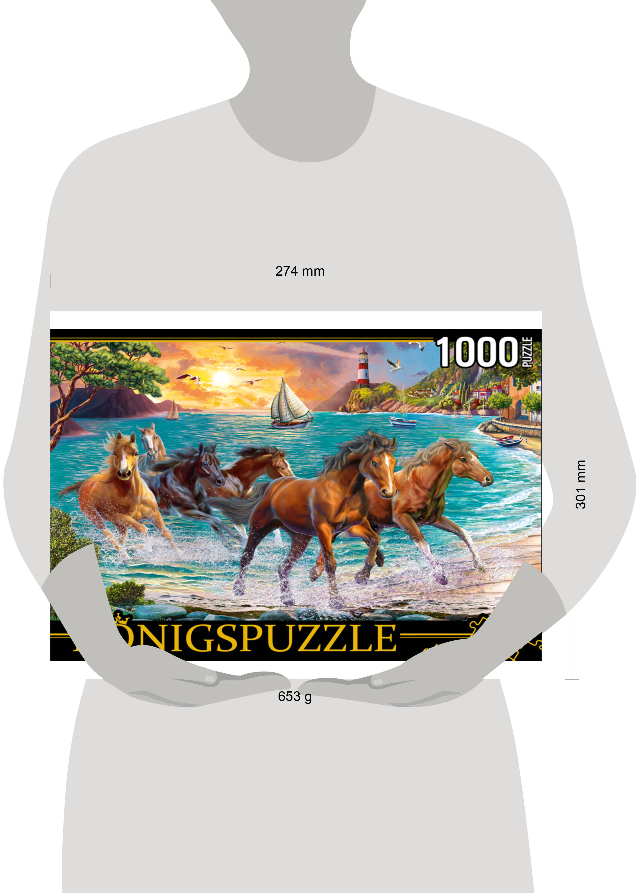 26. Konigspuzzle. ПАЗЛЫ 1000 элементов. ФK1000-6635 ЛОШАДИ У МОРЯ НА ЗАКАТЕ