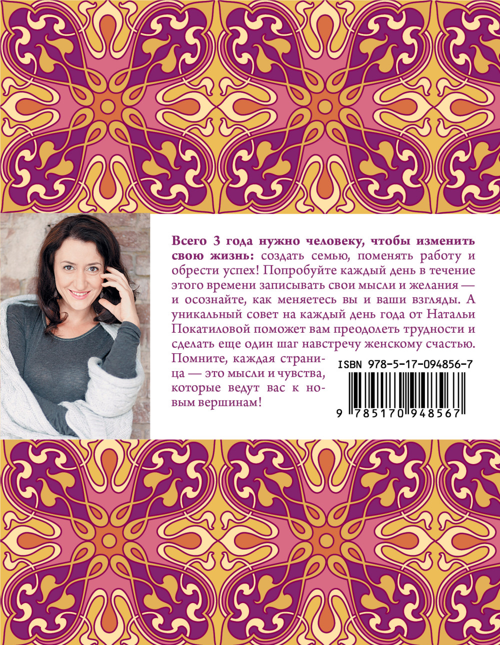 Всего 3 года нужно человеку, чтобы изменить свою жизнь: создать семью, поменять работу и обрести успех! Попробуйте каждый день в течение этого времени записывать свои мысли и желания - и осознайте, как меняетесь вы и ваши взгляды. А уникальный совет на каждый день года от Натальи Покатиловой поможет вам преодолеть трудности и сделать еще один шаг навстречу женскому счастью. Помните, каждая страница - это мысли и чувства, которые ведут вас к новым вершинам!