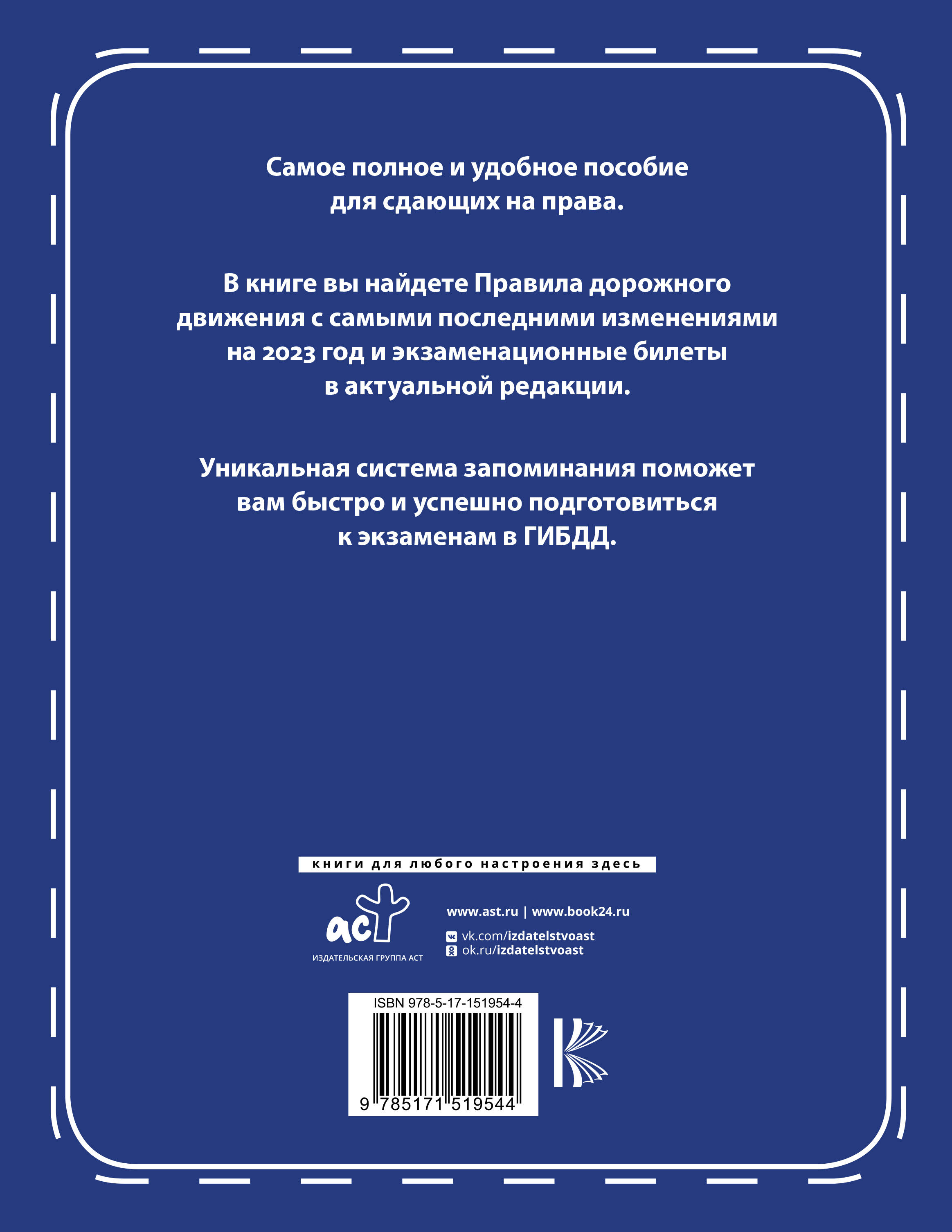 Это самое полное и удобное пособие для сдающих на права. В книге вы найдете Правила дорожного движения с самыми последними изменениями на 2023 год и экзаменационные билеты в актуальной редакции. Уникальная система запоминания поможет вам быстро и успешно подготовиться к экзаменам в ГИБДД.| Издательство | ИЗДАТЕЛЬСТВО "АСТ" |