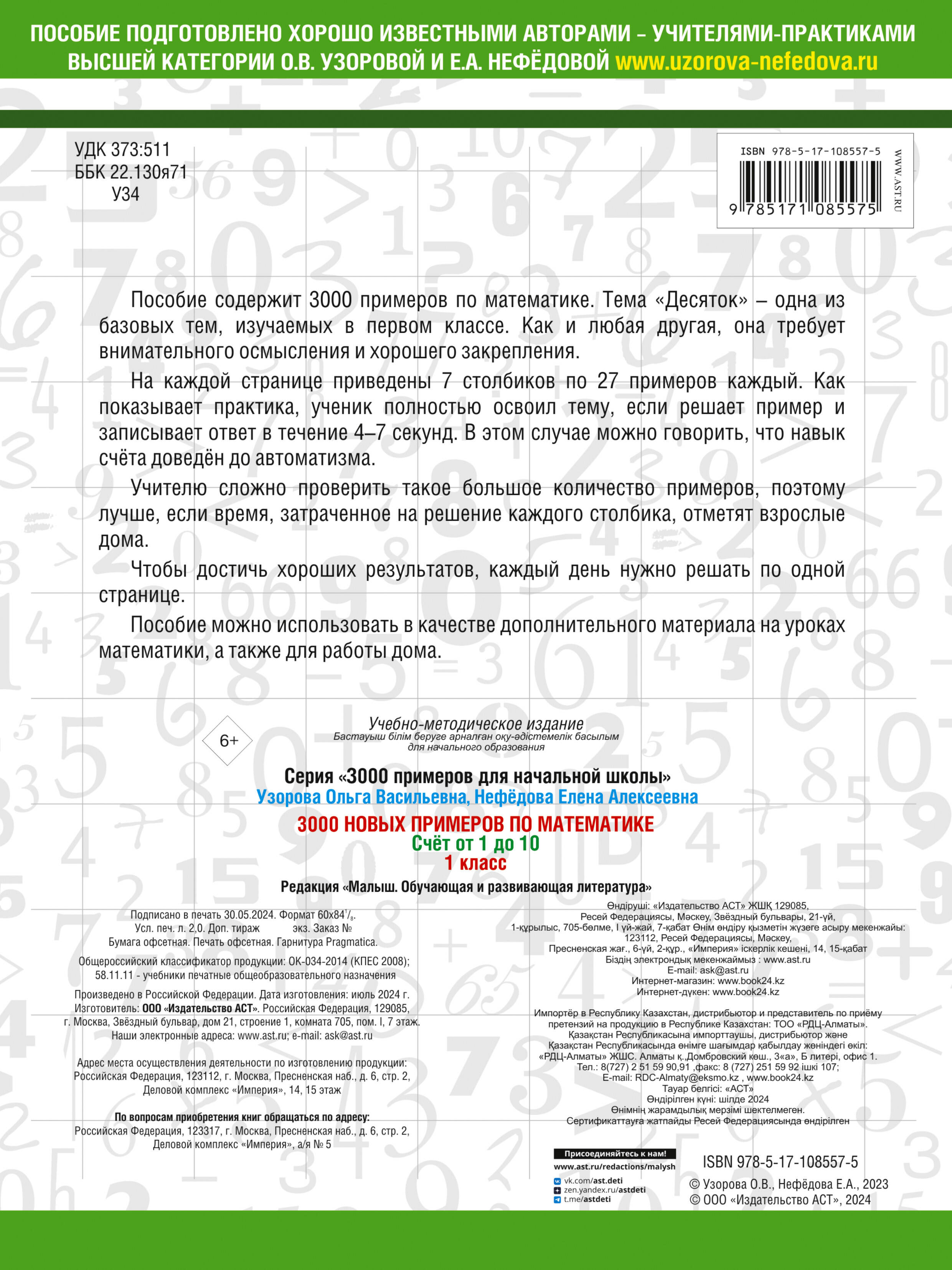 Аннотация: 3000 новых примеров по математике. 1 класс. Счёт от 1 до 10.