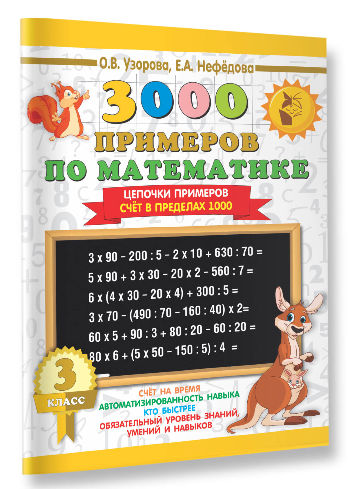 3000 примеров по математике. 3 класс. Цепочки примеров. Счёт в пределах 1000