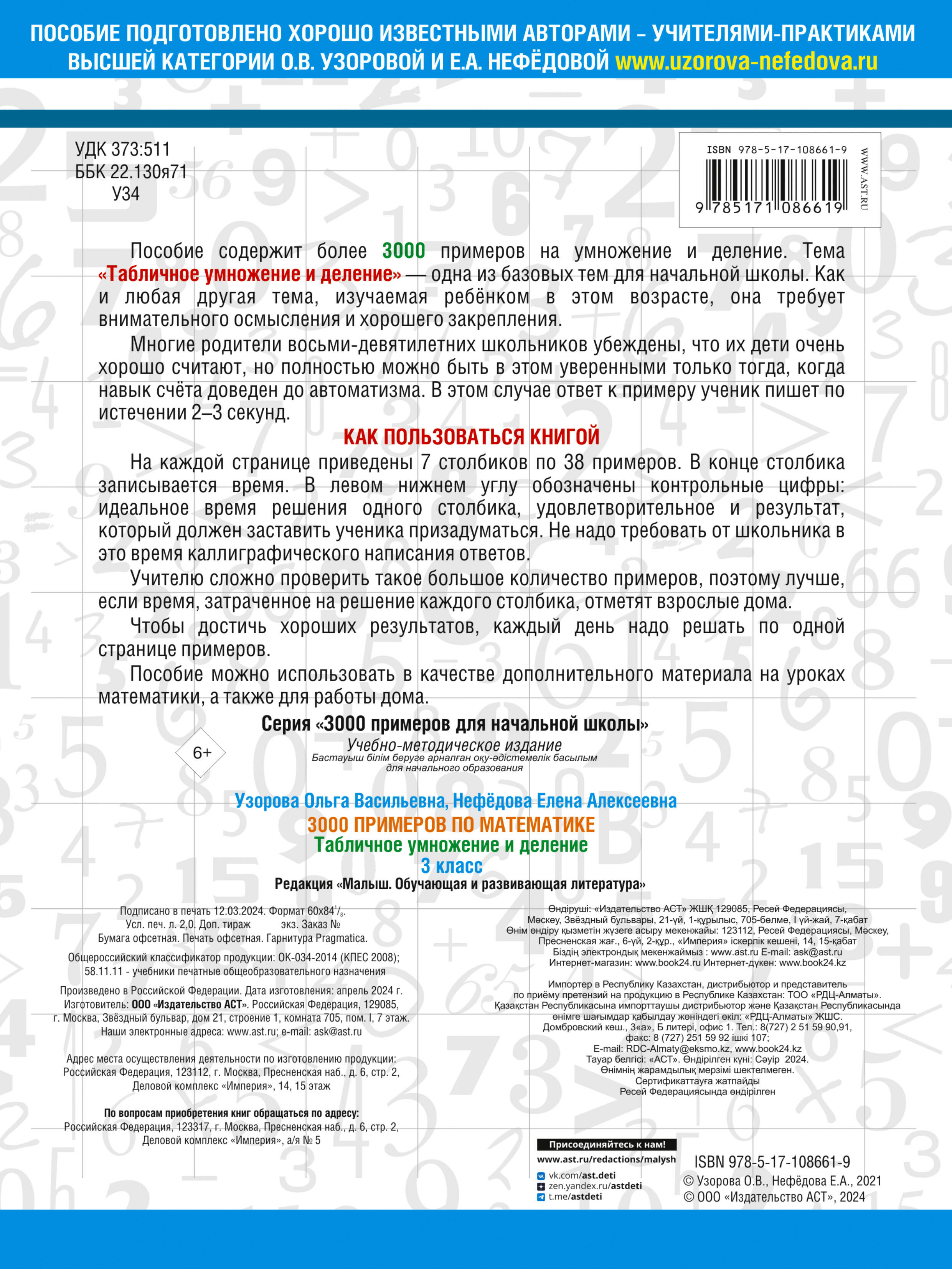 Аннотация: 3000 примеров по математике. 3 класс. Табличное умножение и деление