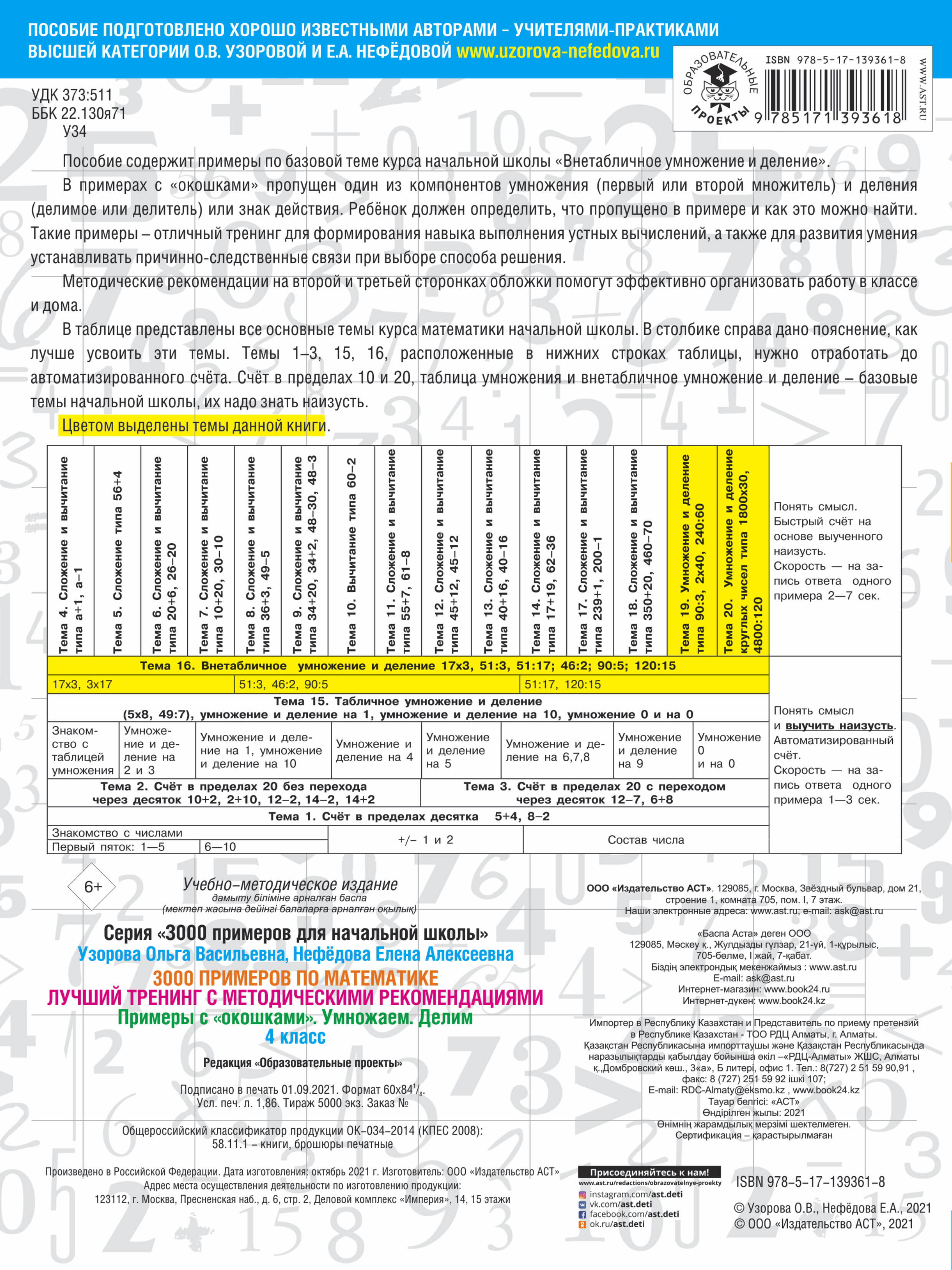 Аннотация: 3000 примеров по математике. Лучший тренинг. Умножаем. Делим. Примеры с "окошками". С методическими рекомендациями. 4 класс