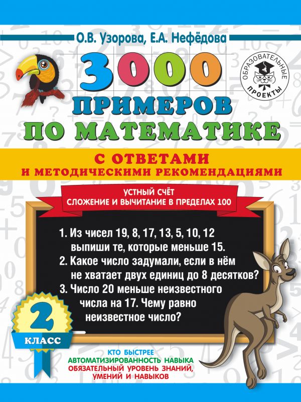 Аннотация: 3000 примеров по математике с ответами и методическими рекомендациями. Устный счет. Сложение и вычитание в пределах 100. 2 класс