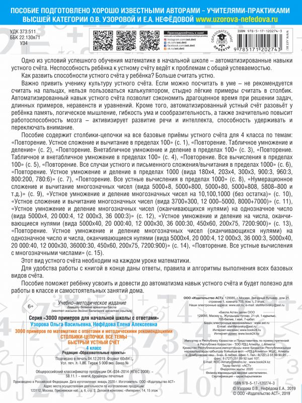 Аннотация: Математика. 4 класс. Быстрый устный счёт. 3000 примеров