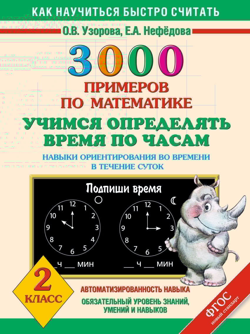Аннотация: 3000 примеров по математике. Учимся определять время по часам. Навыки ориентирования во врени в течение суток. 2 класс