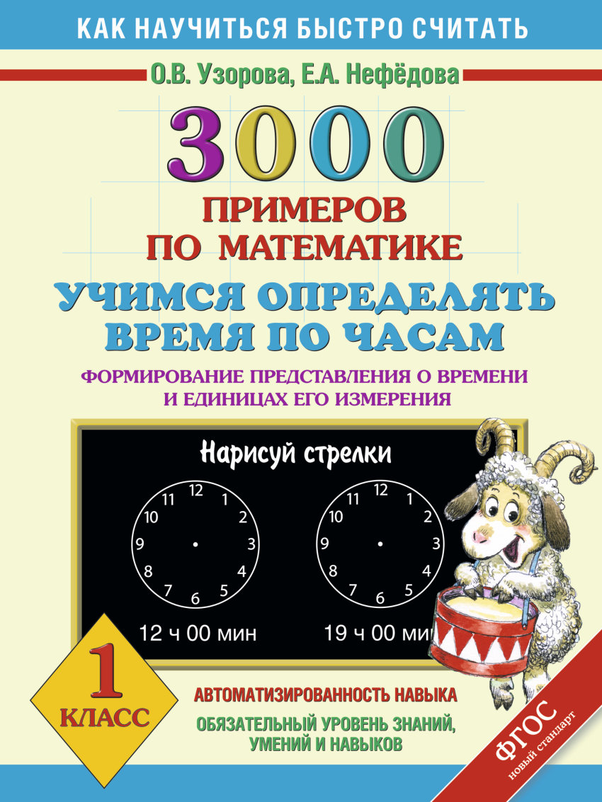 Аннотация: 3000 примеров по математике. Учимся определять время по часам. Формирование представления о времени и единицах измерения. 1 класс