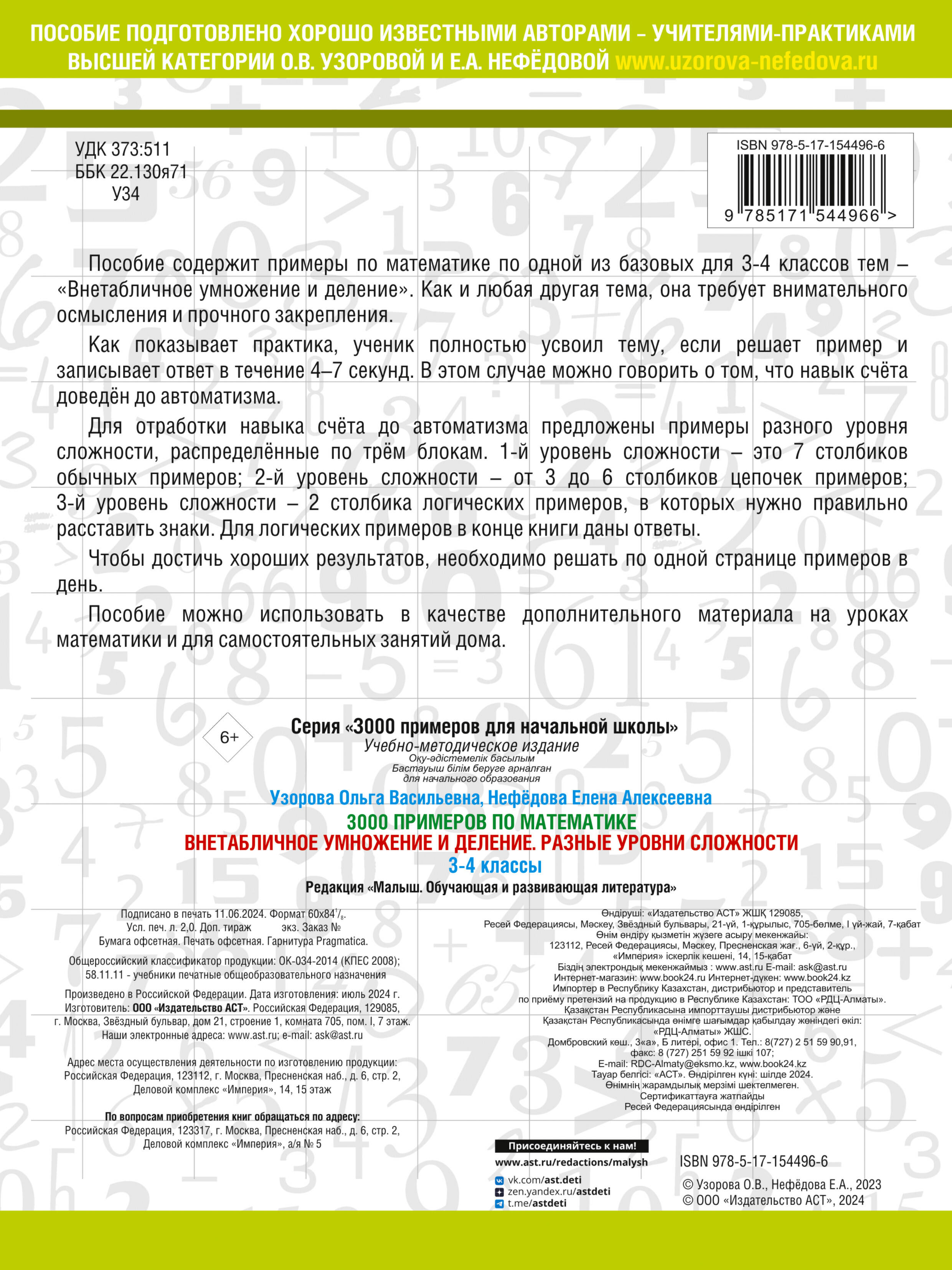 Аннотация: 3000 примеров по математике. Внетабличное умножение и деление. Разные уровни сложности. 3-4 классы