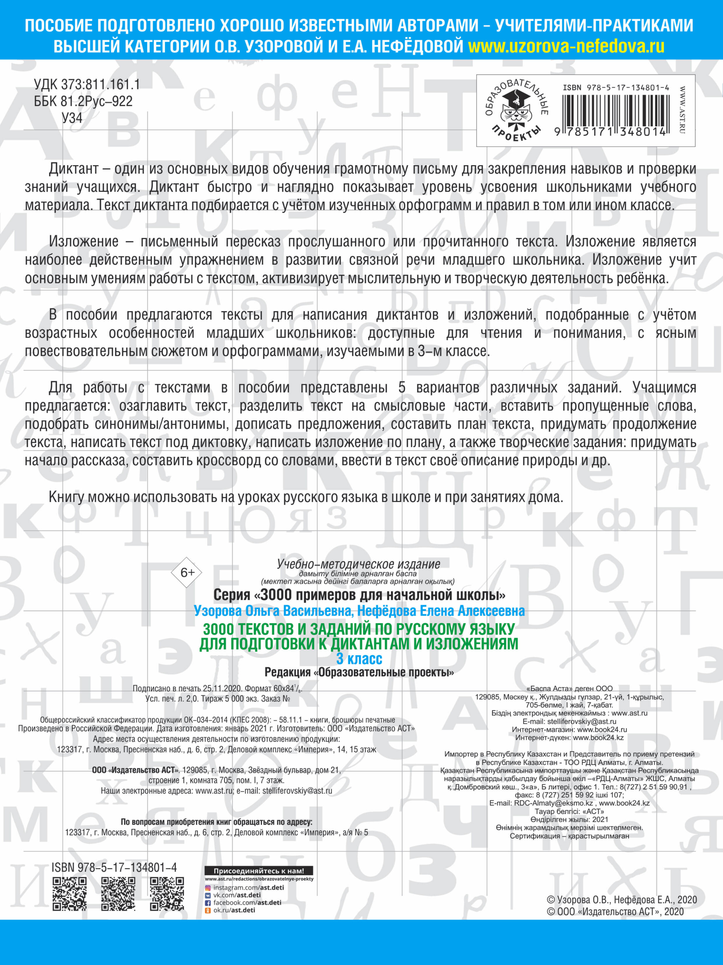 Аннотация: 3000 текстов и примеров по русскому языку для подготовки к диктантам и изложениям. 3 класс