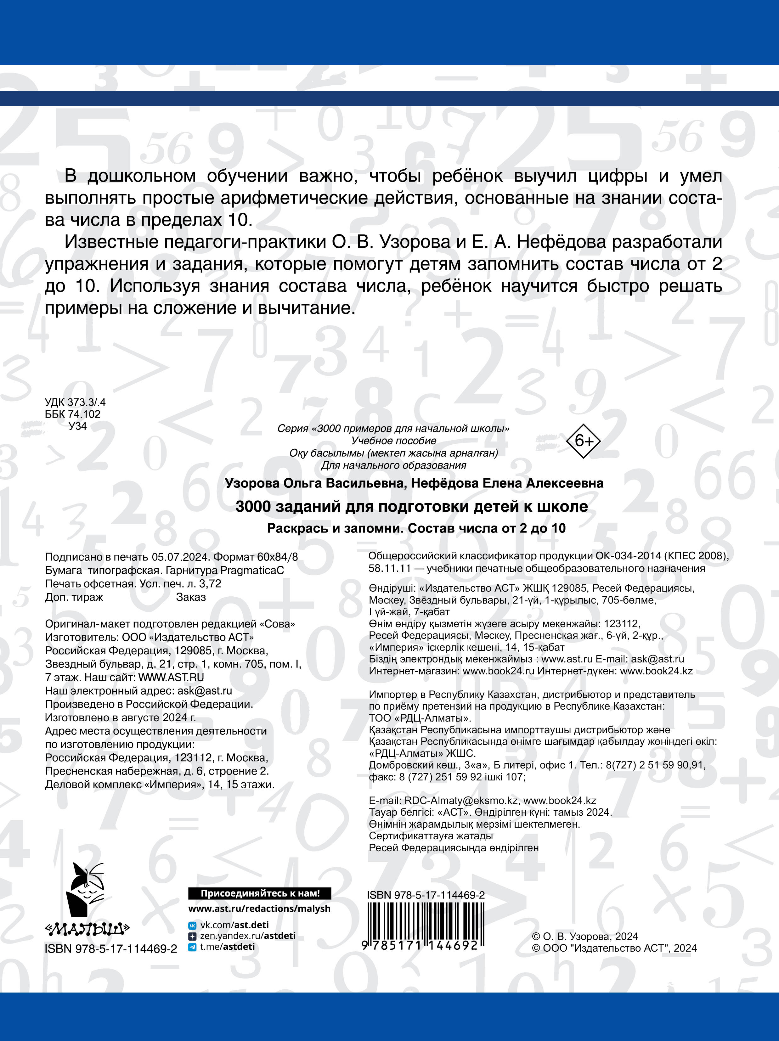 Известные методисты, учителя-практики О. Узорова и Е. Нефёдова разработали пособие для малышей от 3 лет для усвоения понятия состава числа - одного из основных в дошкольном обучении.| Издательство | ИЗДАТЕЛЬСТВО "АСТ" |