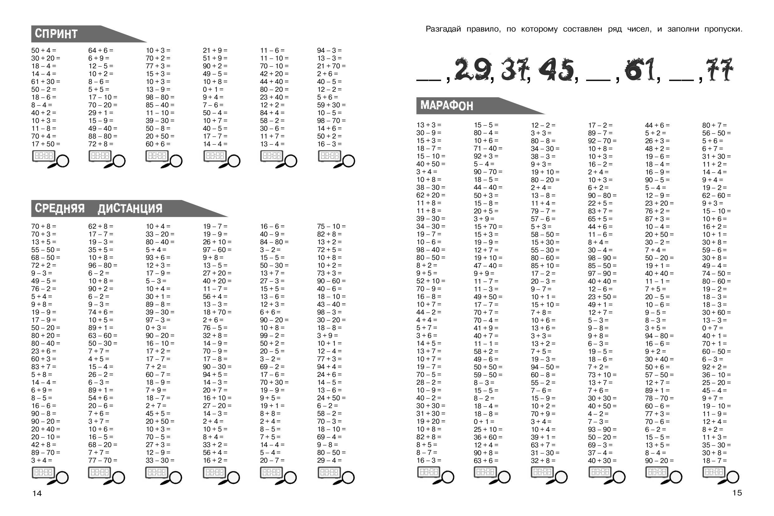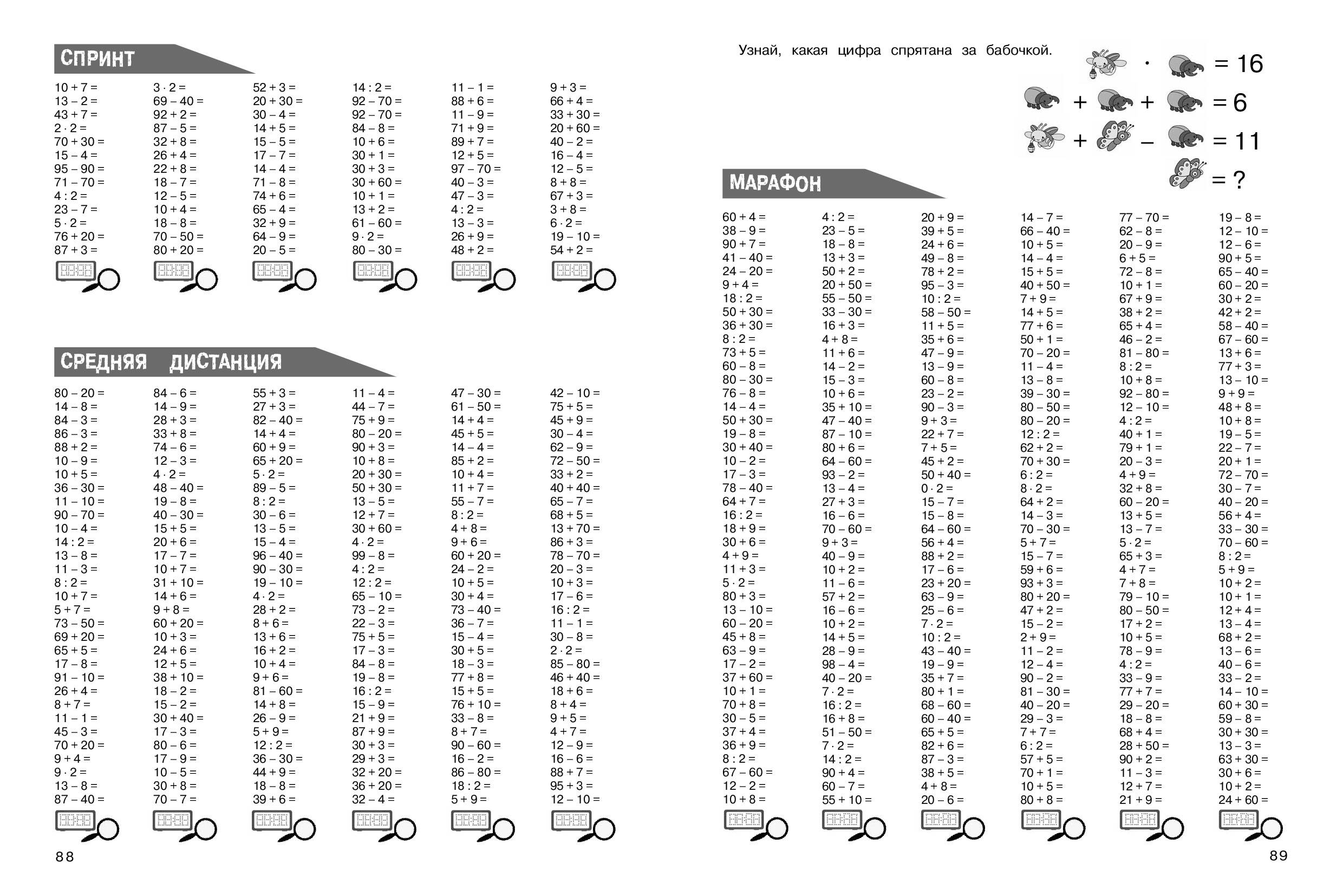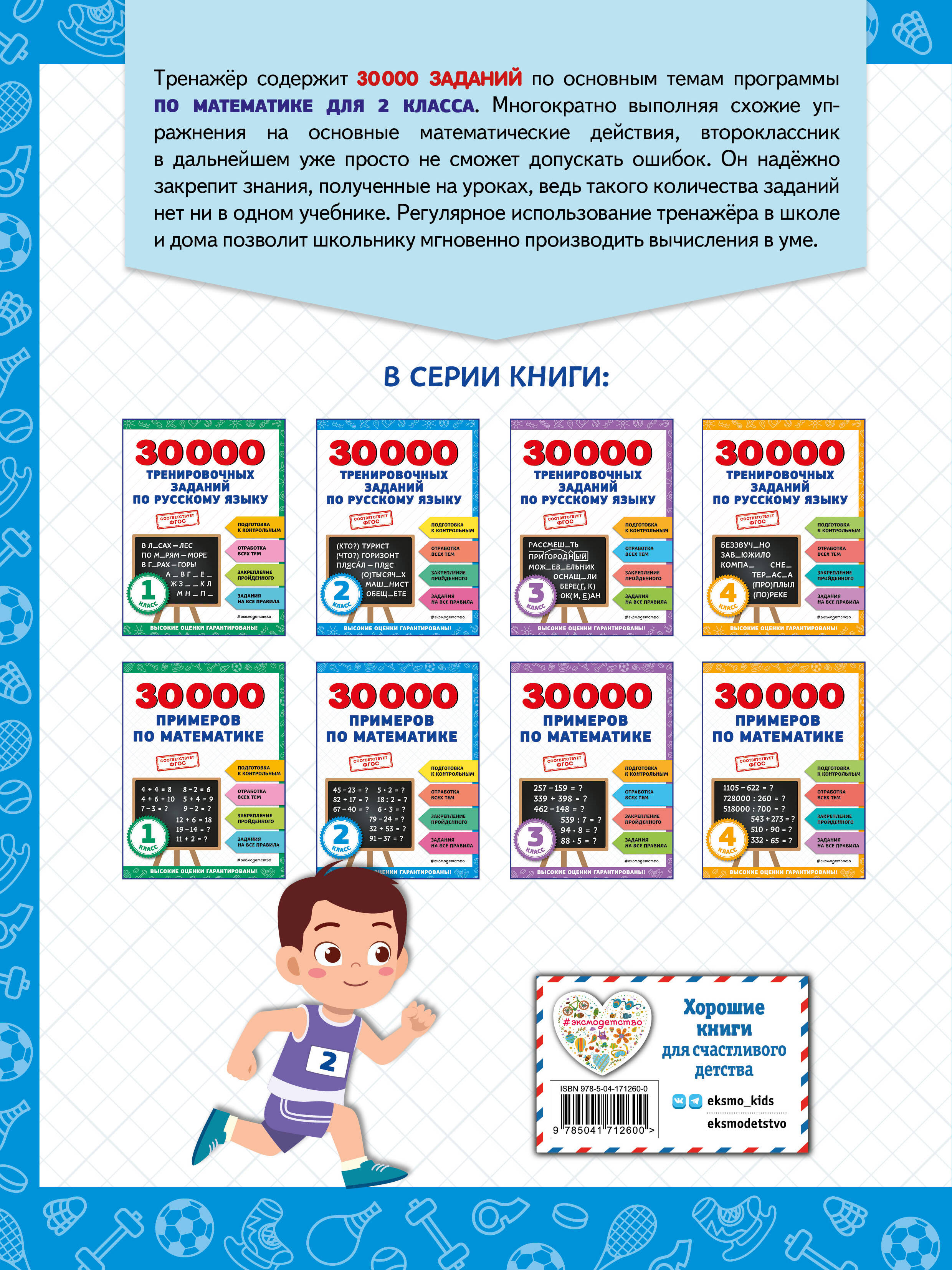 Наиболее действенный способ научиться считать быстро и без ошибок - систематическое повторение. Задания на каждое математическое действие необходимо выполнять многократно, чтобы довести навык устного счёта до полного автоматизма. Ученику предлагается выполнить 30 000 заданий по основным темам программы математики для 2 класса. Выполнив такое количество примеров, школьник надёжно закрепит полученные знания. В дальнейшем он гарантированно сумеет их применить, выполняя самостоятельную, проверочную или просто домашнюю работу. Регулярно работая с тренажёром, второклассник: • научится считать быстро и без ошибок; • сумеет оценить уровень своих знаний и добиться его повышения; • получит первый опыт оценки проделанной работы.| Издательство | ООО "Издательство "Эксмо" |