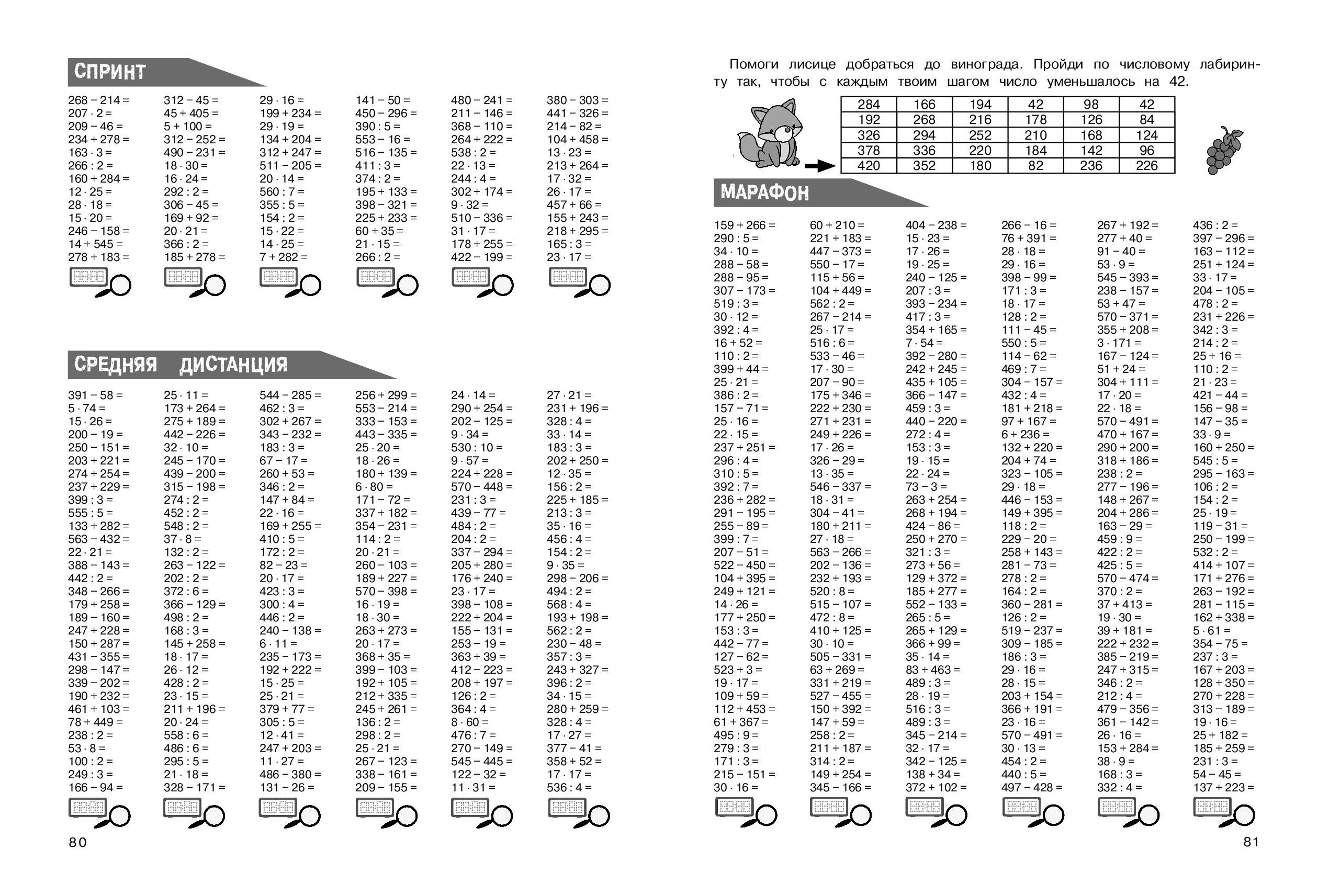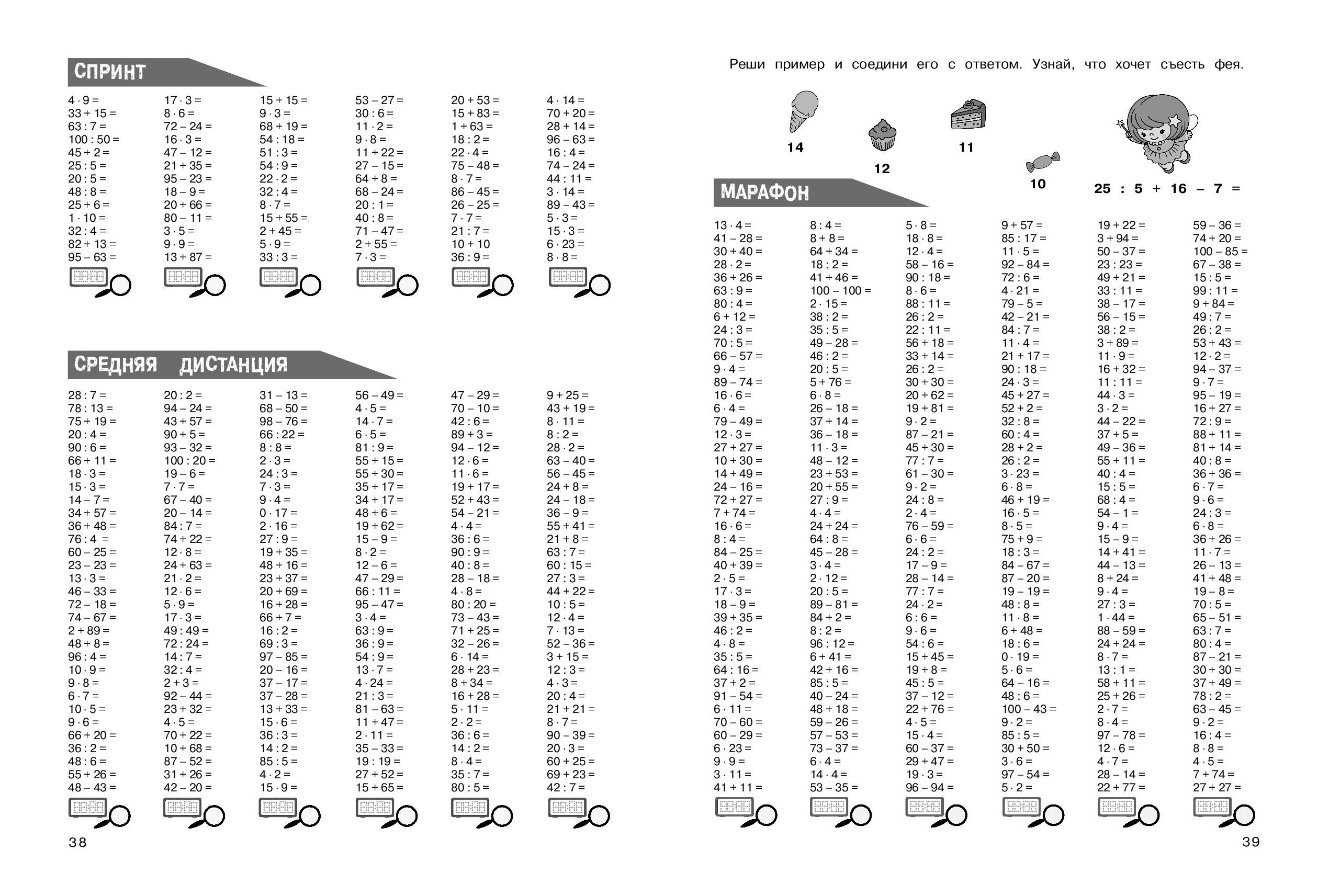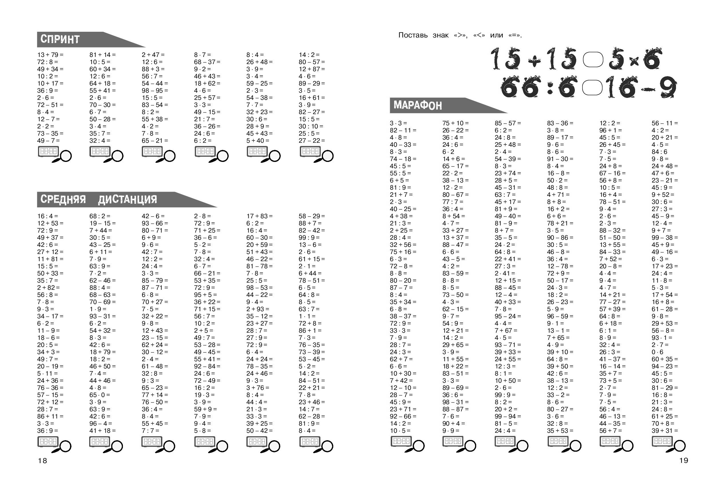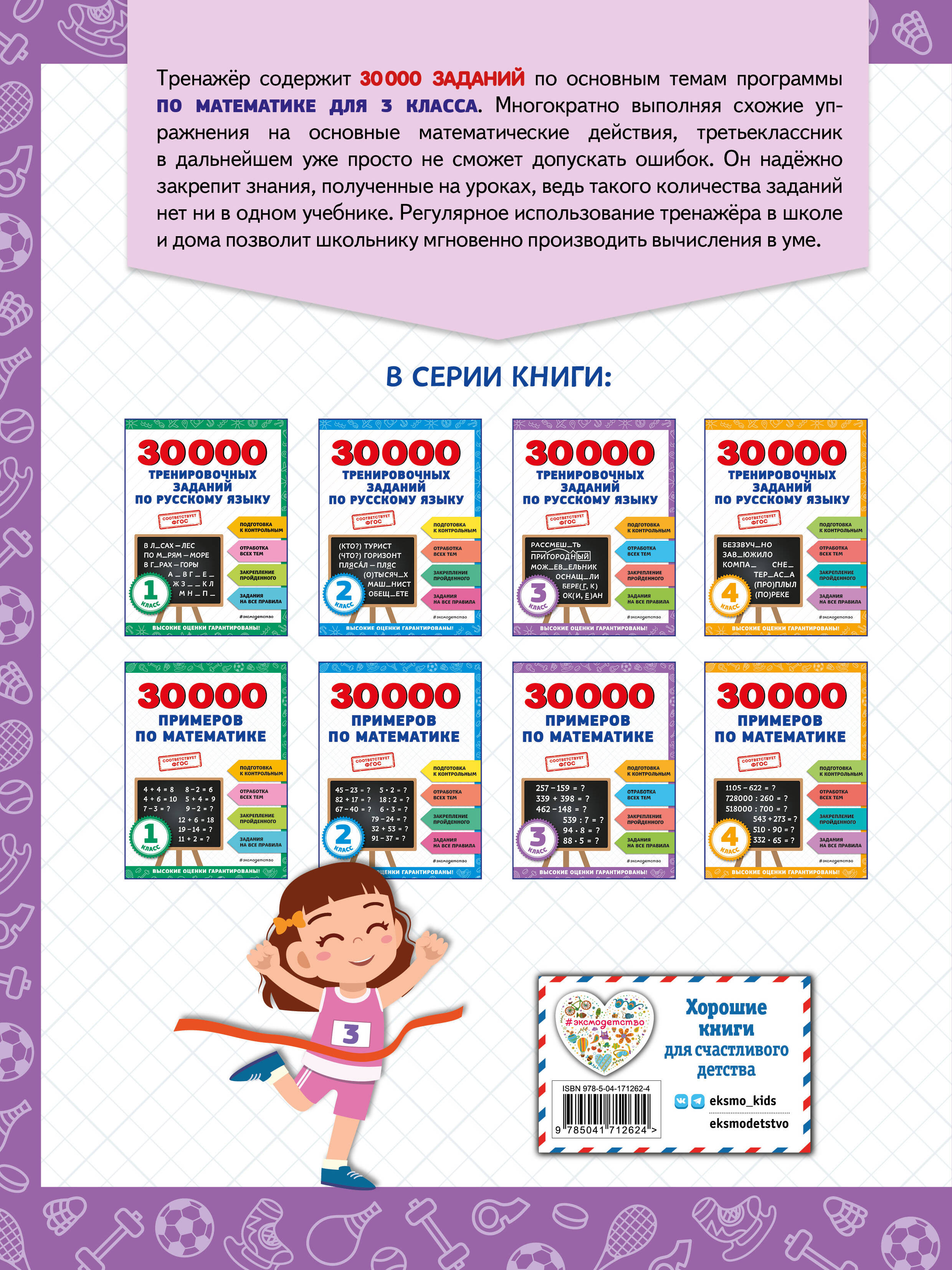 Наиболее действенный способ научиться считать быстро и без ошибок - систематическое повторение. Задания на каждое математическое действие необходимо выполнять многократно, чтобы довести навык устного счёта до полного автоматизма. Ученику предлагается выполнить 30 000 заданий по основным темам программы математики для 3 класса. Выполнив такое количество примеров, школьник надёжно закрепит полученные знания. В дальнейшем он гарантированно сумеет их применить, выполняя самостоятельную, проверочную или просто домашнюю работу. Регулярно работая с тренажёром, третьеклассник: • научится считать быстро и без ошибок; • сумеет оценить уровень своих знаний и добиться его повышения; • получит первый опыт оценки проделанной работы.| Издательство | ООО "Издательство "Эксмо" |
