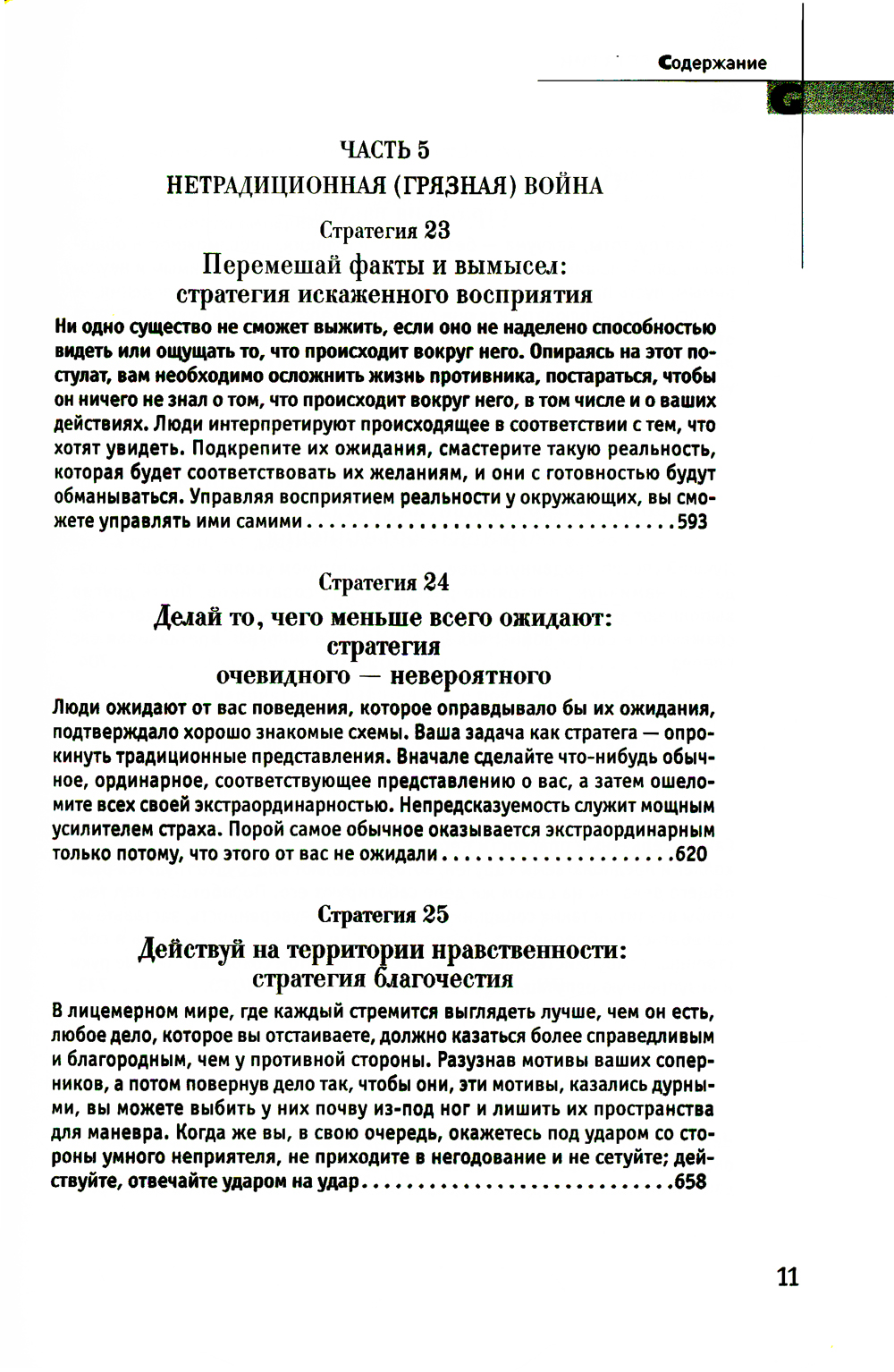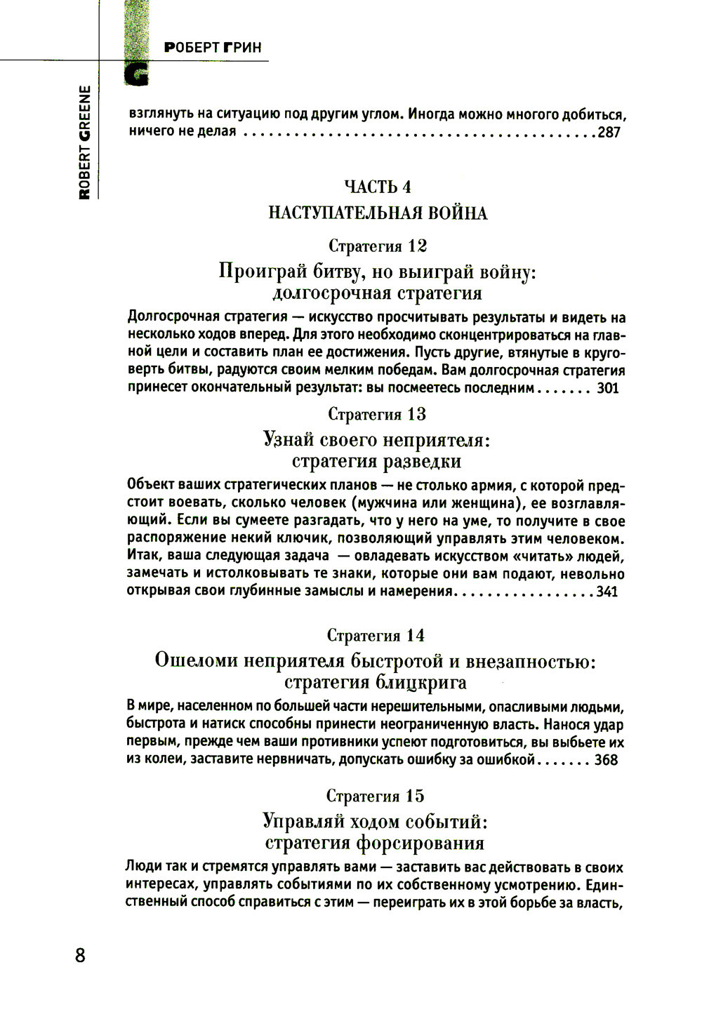 Война и способы ее ведения обладают непреклонной, неумолимой логикой: если вы чего-то хотите или к чему-то стремитесь, то должны быть готовы сразиться за это. Владение стратегическим искусством войны сделает вашу жизнь более спокойной, мирной и плодотворной, ведь вы будете знать, каковы правила игры, и сумеете одерживать победы, не прибегая к насилию. "33 стратегии войны" от Роберта Грина, искушенного знатока человеческой психологии и автора мирового бестселлера "48 законов власти", помогут вам найти выход из любого сложного положения и принять правильное решение. Войну - как и любой другой конфликт - ведут и выигрывают благодаря стратегическому искусству.| Издательство | Рипол Классик |