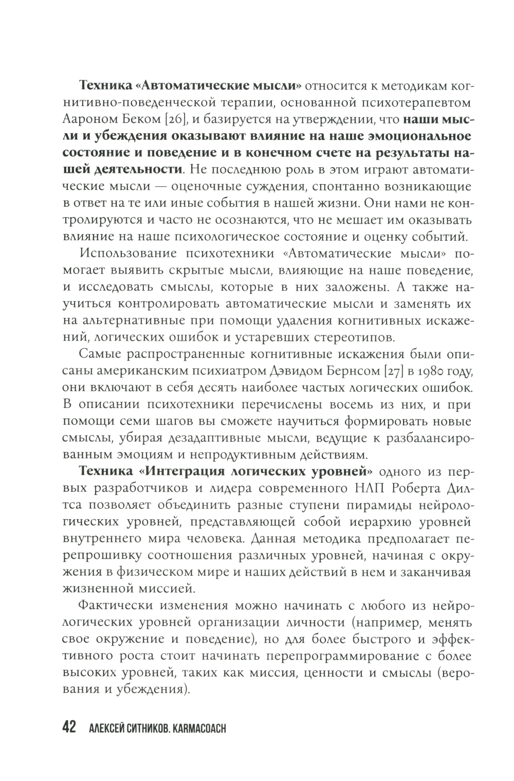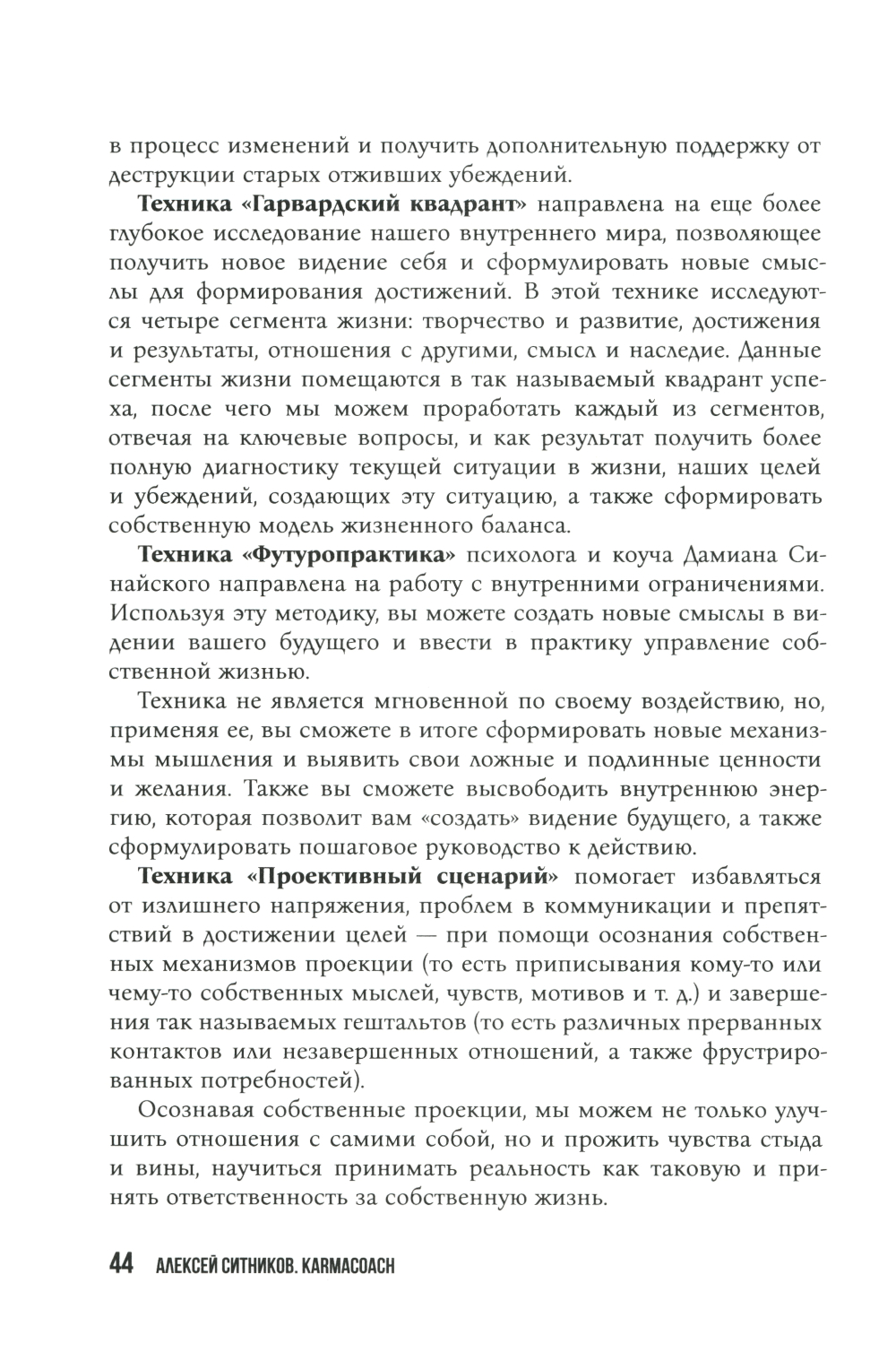 Комплект из 2 книг: «33 стратегии войны» Война и способы ее ведения обладают непреклонной, неумолимой логикой: если вы чего-то хотите или к чему-то стремитесь, то должны быть готовы сразиться за это. Владение стратегическим искусством войны сделает вашу жизнь более спокойной, мирной и плодотворной, ведь вы будете знать, каковы правила игры, и сумеете одерживать победы, не прибегая к насилию. «33 стратегии войны» от Роберта Грина, искушенного знатока человеческой психологии и автора мирового бестселлера «48 законов власти», помогут вам найти выход из любого сложного положения и принять правильное решение. Войну - как и любой другой конфликт - ведут и выигрывают благодаря стратегическому искусству. «Karmacoach» KARMALOGIC, проект профессора Алексея Ситникова, четырежды доктора наук, возник несколько лет назад и сразу же привлек внимание миллионов людей со всего мира. Многочисленные эксперты и просто неравнодушные читатели смогли получить ответ на фундаментальный вопрос: «Какие факторы влияют на индивидуальный успех и личное счастье?» Главная идея Проекта - показать, что судьба человека зависит от того, насколько он 1) адекватно понимает устройство мира и соблюдает его законы, 2) разумно распоряжается своими ресурсами, 3) готов учиться и адаптироваться, 4) эффективно использует свое время, - а затем дать инструменты, которые помогут на всех четырех этапах и в результате позволят каждому полностью принять ответственность за свою судьбу. KARMACOACH, третья книга Проекта, рассказывает о 54 техниках личностного развития и личностных изменений - через смыслы, мотивы, процессы, состояния, образы и слова. Алесей Ситников и эксперты его команды подробно описывают каждую практику, объясняют, как она работает, почему, при каких запросах она максимально эффективна, какие существуют противопоказания и каков ожидаемый результат. Это фундаментальный труд, который будет интересен как профессиональным психотерапевтам и коучам, которые хотят эффективно помогать другим, так и людям, желающим самостоятельно изменить свою жизнь к лучшему.| Издательство | Рипол Классик |