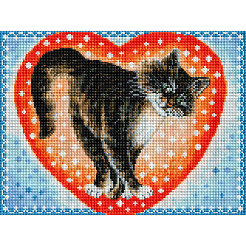 Блестящая картина из квадратных камней 2,5*2,5 мм. в размере 30*40 см от Белоснежки. Красивая задорная кошка на фоне красного сердца может стать отличным подарком как в виде набора для творчества, так и в виде готовой картины. Сюжет специально адаптирован под алмазную мозаику, учтены все особенности и использована максимальная палитра цветов. Основа картины - холст, натянутый на подрамник, для придания крепости конструкции подрамник усилен листом оргалита. На холст нанесена цветная схема с контрастными условными обозначениями, схему покрывает высококачественный клеевой слой, сверху слой закрыт пленкой. Комплект квадратных камней расфасован по цветам в отдельные пакеты, на каждом пакете есть наклейка с номером цвета и условным обозначением. Материал камней - композитный, на основе эпоксидной смолы, благодаря форме камней картина собирается без зазоров и по готовности получается красивое мерцающие изображение. Для этого размера дополнительно можно приобрести багетную раму.| Издательство | Баскаков Павел Владимирович ИП |