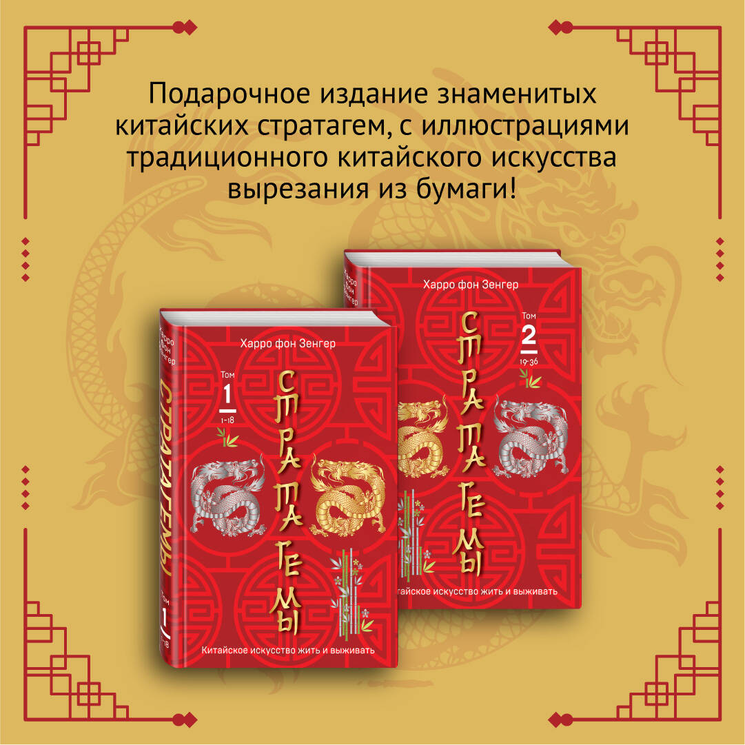 В комплект входят 2 тома «Стратагемы. Китайское искусство жить и выживать». Книга 36 знаменитых китайских стратагем как ключ к успеху во всех житейских делах - удобное и эффективное руководство для деловых и личных отношений. Древнекитайское искусство стратагем предлагает хоть и своеобразный, но по-своему очень последовательный и практичный взгляд на вещи, которыми можно руководствоваться во всех жизненных обстоятельствах. Стратагема означает стратегический план, в котором для противника заключена какая-либо ловушка, хитрость. Необходимыми условиями для составления и успешной реализации стратагем являются: - умение рассчитывать ходы и предвидеть их последствия; - знание психологических особенностей тех, против кого нацелен план; - упорство автора плана в реализации стратагемы. Стратагема организует последовательность действий. Стратагемы составляли не только полководцы. Политические учителя и наставники царей были искусны в управлении гражданским обществом и в дипломатии. В Китае за несколько столетий до нашей эры выработка стратегических планов - стратагем - вошла в практику и, став своего рода искусством, обогащалась многими поколениями. Стратагемы стали секретным национальным достоянием. На вкладках издания изображены фигуры красного цвета, которые можно вырезать. Вырезанные из бумаги фигуры являются одним из самых популярных декоративных изделий ручной работы в Китае. Ими украшают стены, окна, двери, зеркала, лампы. Их дарят на праздники, желая благополучия и счастья. Попробуйте приобщиться к еще одному традиционному искусству Китая.| Издательство | ООО "Издательство "Эксмо" |