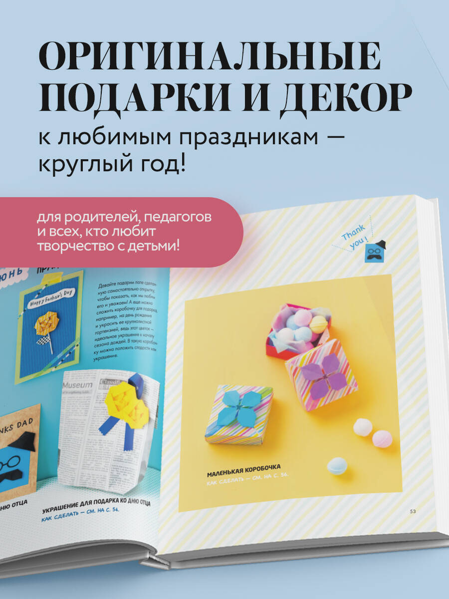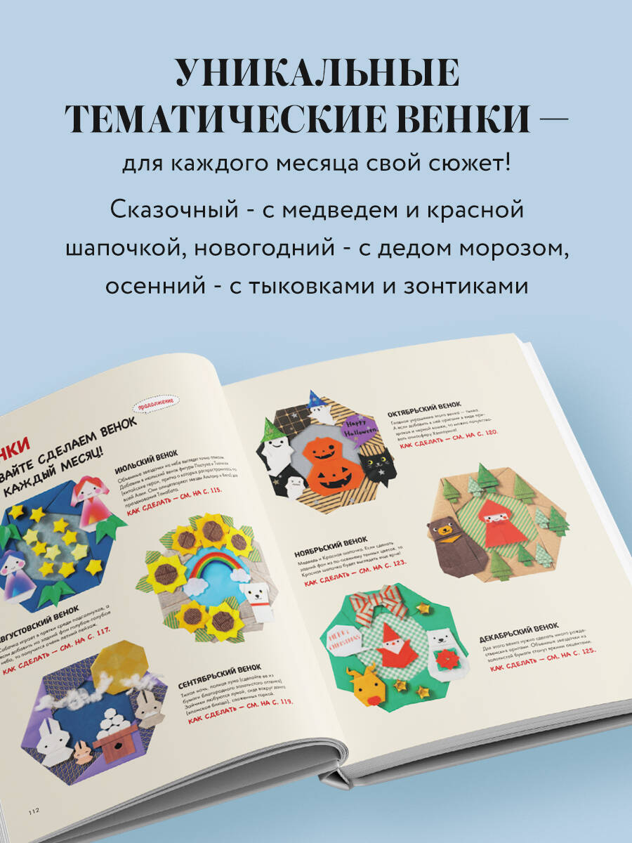 Ваш ребенок откроет волшебный мир оригами, в котором каждое время года приносит новые идеи для творчества! По пошаговым мастер-классам вы сложите из бумаги более 60 удивительных декораций и подарков, которые будут радовать каждый день. Все разделы посвящены 12 месяцам, каждый из которых добавит яркости семейным праздникам и поможет провести их весело, складывая оригами. Ваш ребенок научится складывать не только простые 2D-оригами, но и объемные и даже модульные фигуры! А если объединить несколько фигурок, вы получите уникальные венки со сказочными мотивами, забавными персонажами и сюжетами. В книге вы найдете: - более 60 фигурок к разным временам года и праздникам и наглядные примеры их использования; - 12 разделов, посвященных всем месяцам, и 1 раздел - по сборке тематических венков; - пошаговые инструкции по складыванию 2D-, объемных и модульных оригами. Добавьте творчества в семейные праздники и повседневную жизнь с фигурками оригами!| Издательство | ООО "Издательство "Эксмо" |