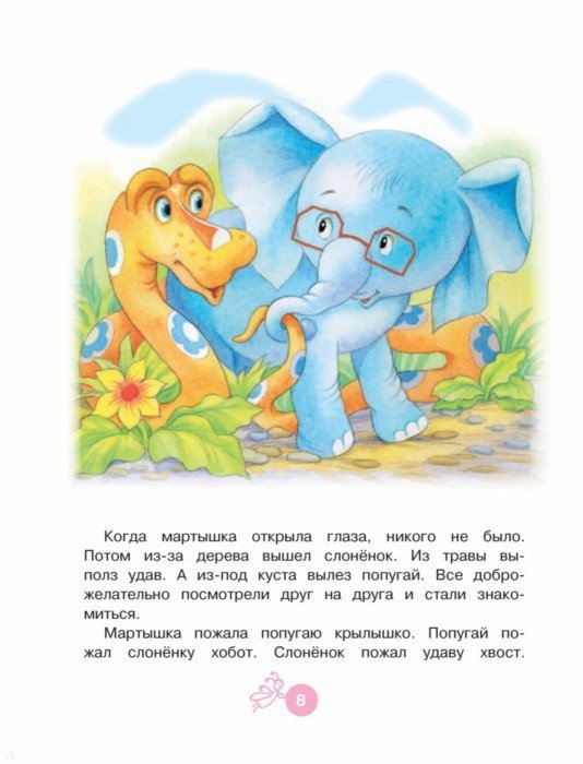 Дети любят истории с продолжением про одних и тех же героев. Серия «Читаем перед сном» как раз и состоит из таких история. Чтобы каждый вечер перед сном читать новую сказку, или повесть, или главу, а на следующий вечер ждать следующую. В книгу «38 попугаев» вошли все знаменитые сказочные истории про слонёнка, удава, попугая и мартышку, которые жили в африканских джунглях и при этом были друзьями не разлей вода. Как раз хватит на двенадцать чтений на ночь!