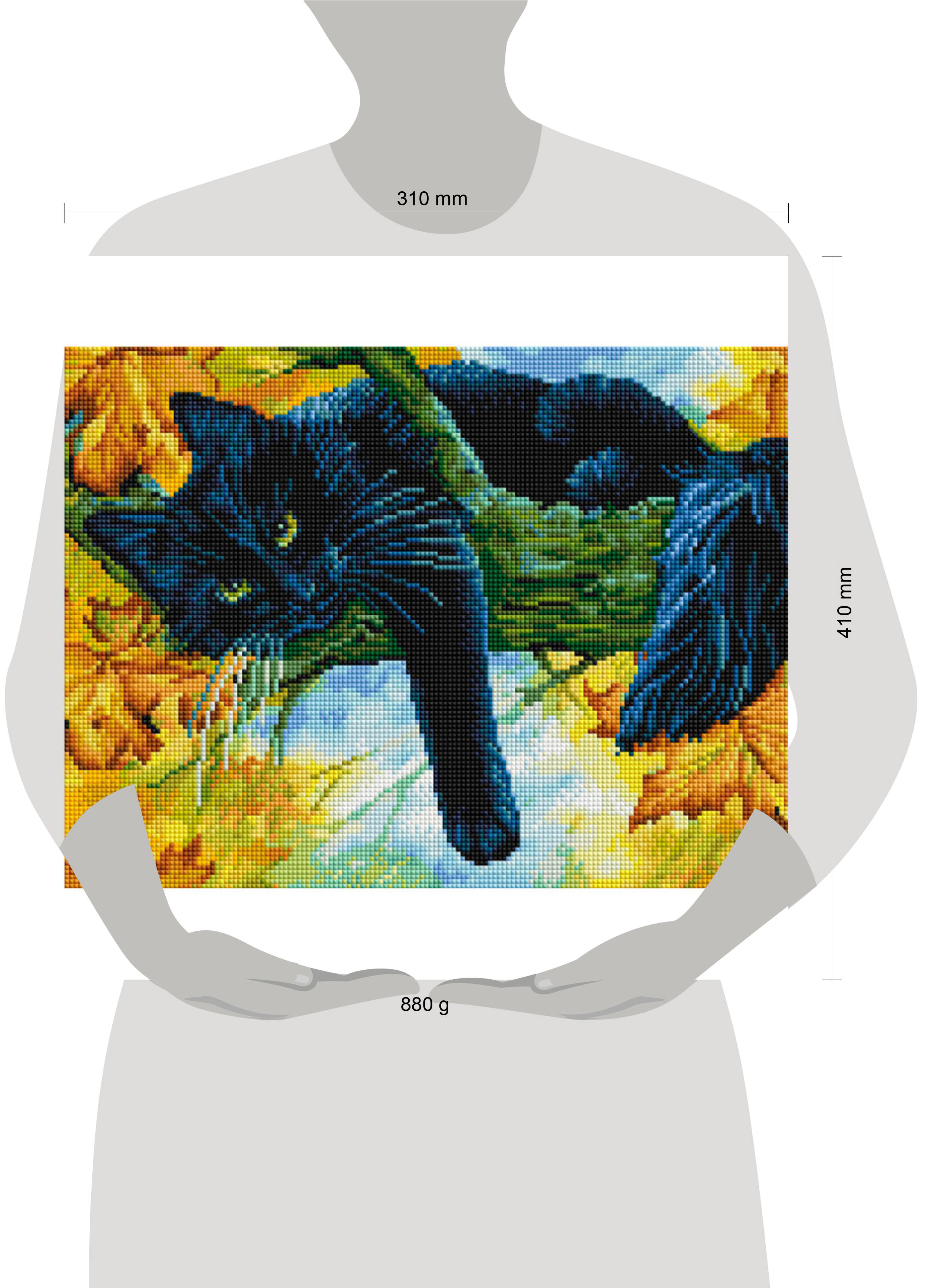 Блестящая картина из квадратных камней 2,5*2,5 мм. В размере 30*40 см. Основа картины - холст, натянутый на подрамник, для придания крепости конструкции подрамник усилен листом оргалита. На холст нанесена цветная схема с контрастными условными обозначениями, схему покрывает высококачественный клеевой слой, сверху слой закрыт пленкой. Комплект квадратных камней расфасован по цветам в отдельные пакеты, на каждом пакете есть наклейка с номером цвета и условным обозначением. Материал камней - композитный, на основе эпоксидной смолы, благодаря форме камней картина собирается без зазоров и по готовности получается красивое мерцающее изображение. Для этого размера дополнительно можно приобрести багетную раму| Издательство | Баскаков Павел Владимирович ИП |