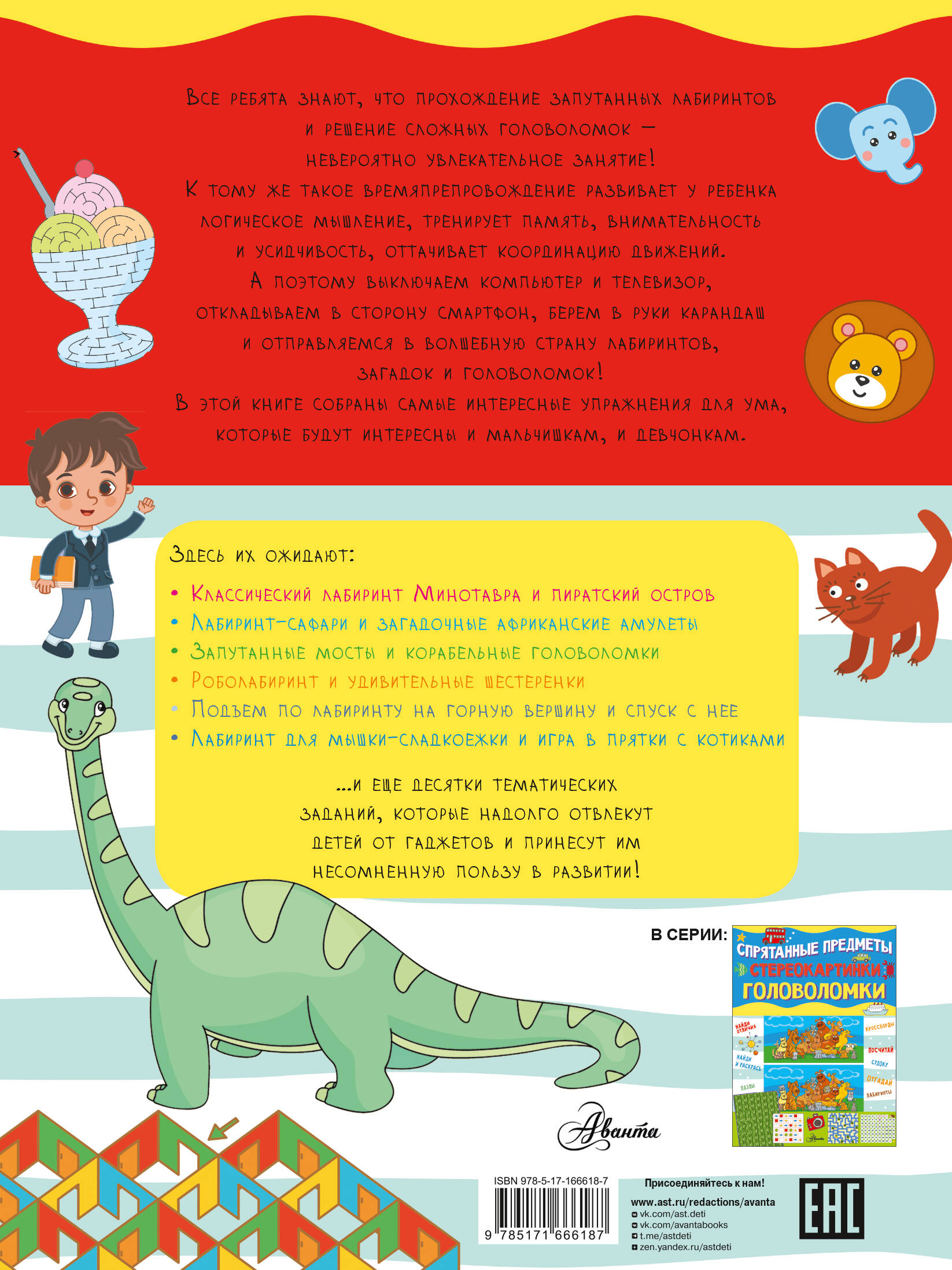 В книге собраны интересные и увлекательные лабиринты и головоломки разного уровня сложности. Вооружившись карандашом или ручкой вместо смартфона, а также терпением и любопытством, ребенок сможет заполнить свое свободное время не игровым и мультипликационным контентом, а весьма полезным развивающим занятием - прохождением лабиринтов и разгадыванием головоломок. Тренировка памяти инаблюдательности, логического мышления и внимательности - главная задача этого издания, где каждый школьник сможет выбрать для себя задание по силам и интересам. Для среднего школьного возраста.| Издательство | Издательство "АСТ" |