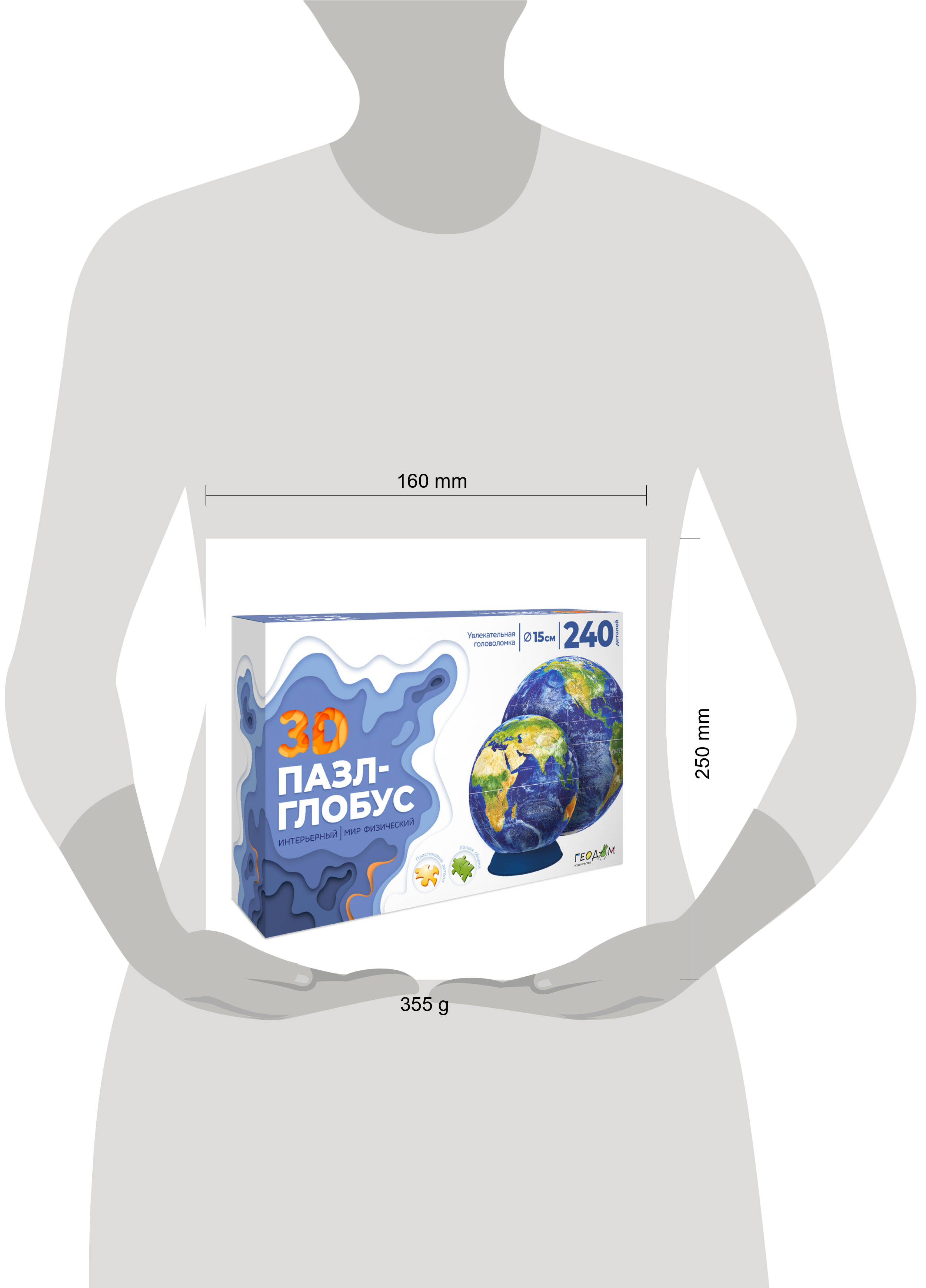 3D Пазл-глобус. Мир физический. Интерьерный полупрозрачный. 240 деталей. Диаметр 15 см. ГЕОДОМ Пазл-глобус "Мир физический" - это увлекательная 3D- головоломка. Соберите фрагменты пазла по схеме - и увидите материки, моря и океаны Земли! Благодаря деталям из пластика собирать пазл легко и удобно - он отлично держит форму и станет оригинальным украшением интерьера. Количество деталей: 240. Рекомендованный возраст: 6+.| Издательство | ГеоДом ООО |