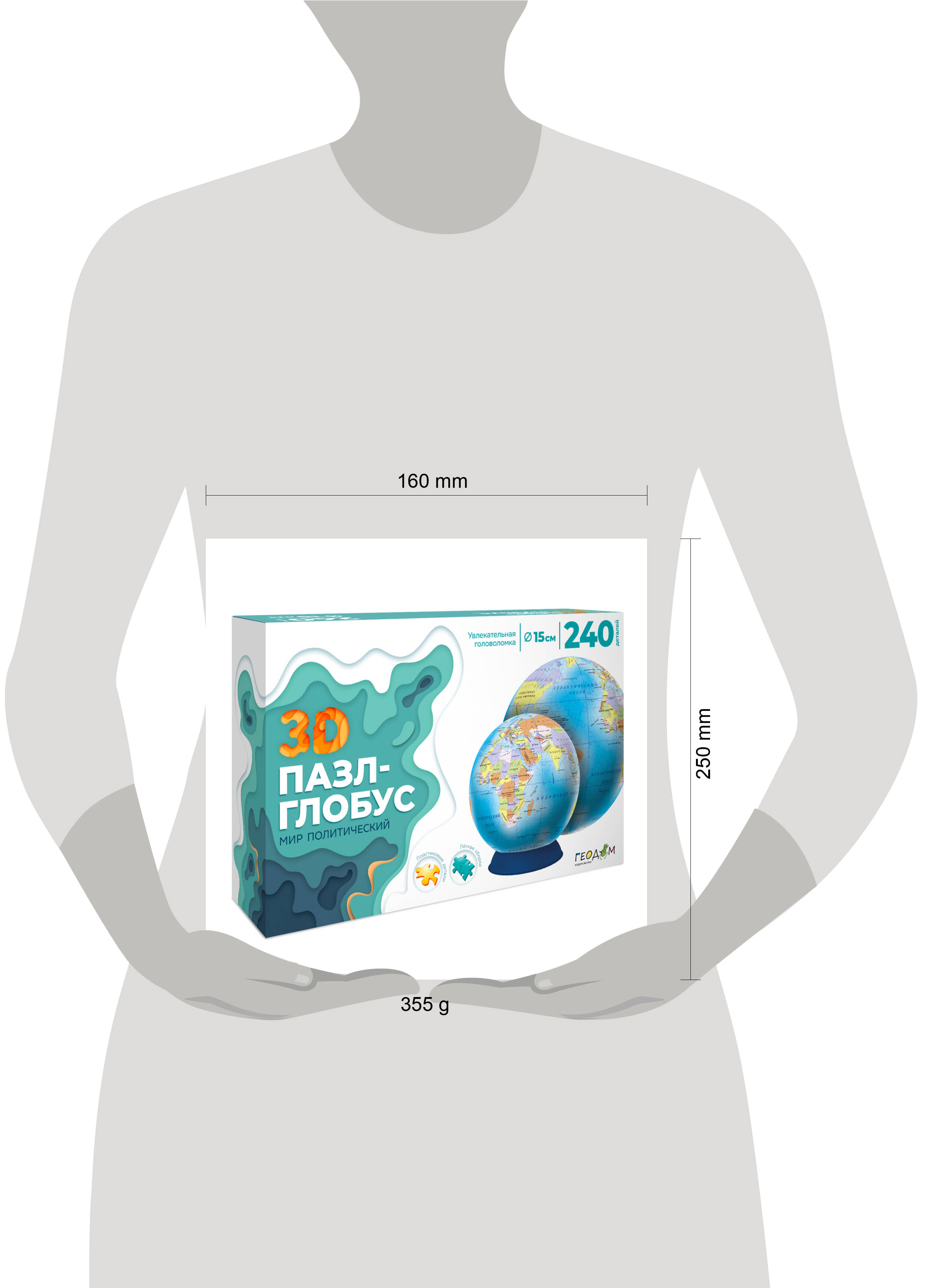 3D пазл-глобус "Мир политический" - это увлекательная головоломка и реалистичная модель земного шара. Выпуклые детали удобной формы делают сборку пазла лёгкой и интересной. Сложите все детали по фрагментам - и изучайте страны мира. Количество деталей: 240. Рекомендованный возраст: 6+| Издательство | ГеоДом ООО |