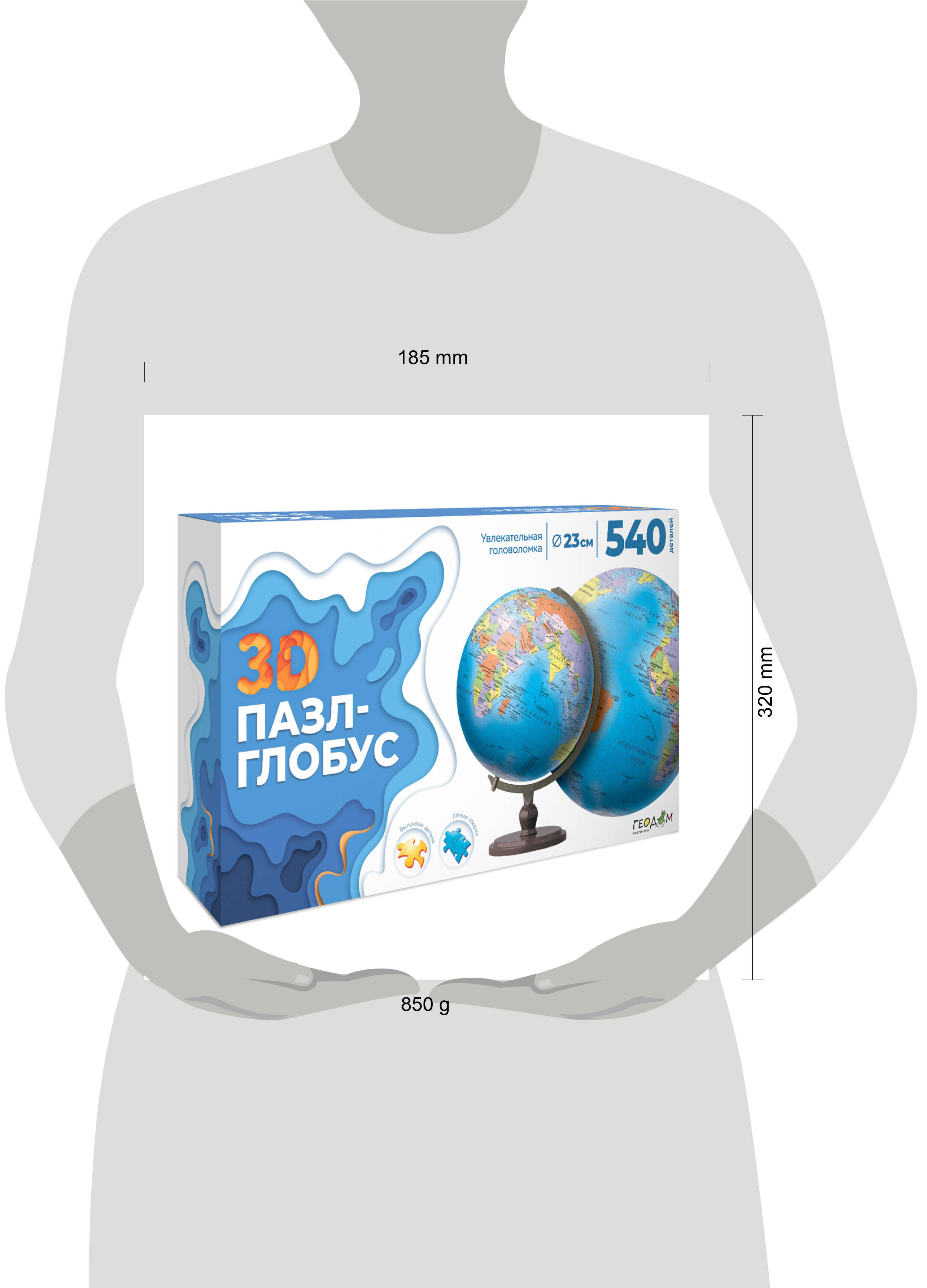 Аннотация: 3D Пазл-глобус. Мир политический. 540 деталей. Диаметр 23 см. ГЕОДОМ
