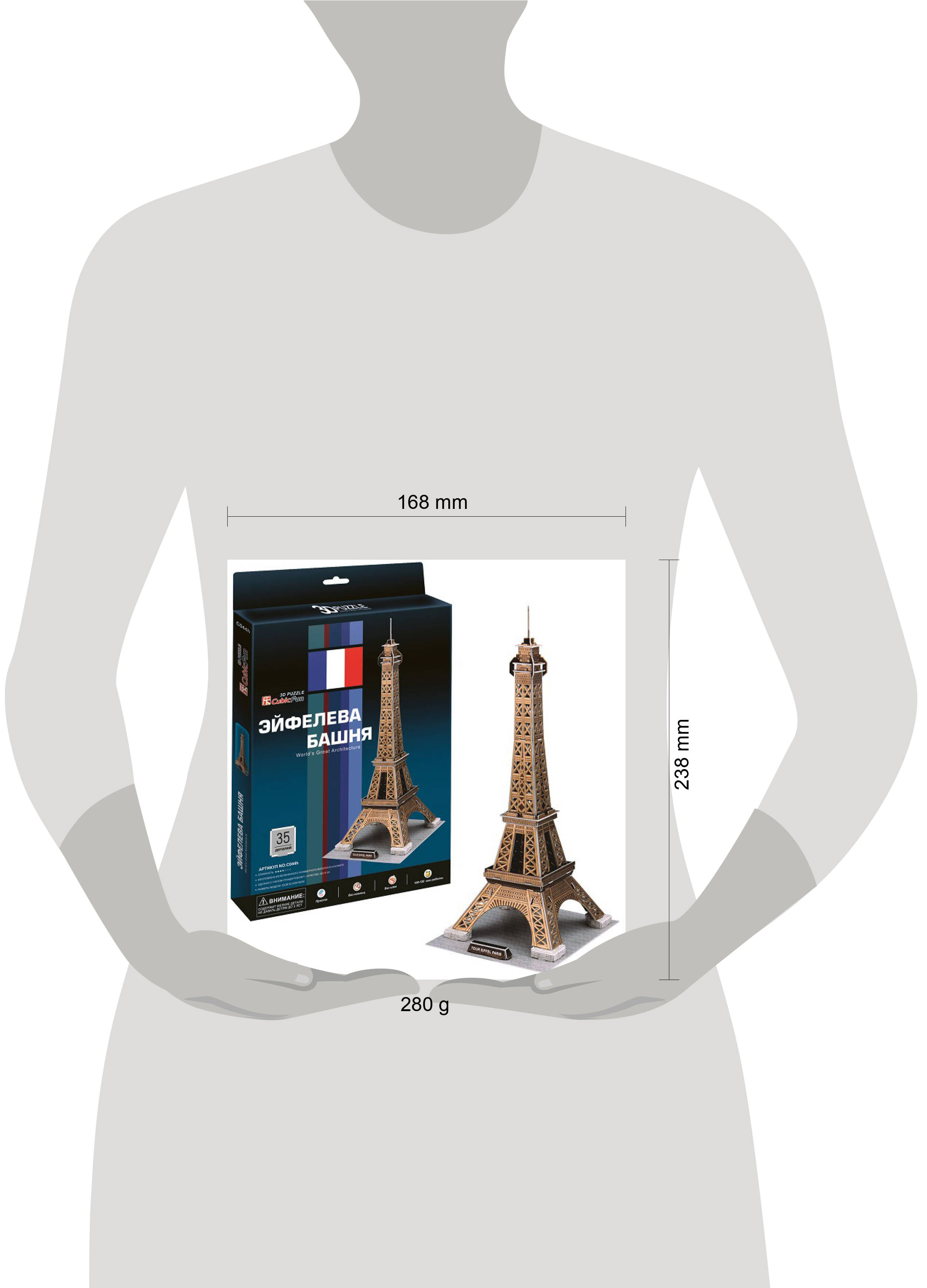 3D пазлы от лидирующей инновационной компании CubicFun - высокий уровень детализации, качество самих деталей (детали надежно крепятся между собой без дополнительной фиксации, создавая единую конструкцию), стильный дизайн, а также информационная и образовательная составляющая. 3D пазл Эйфелева башня из серии World's Great Architectures - C Series c уровнем сложности 4 из 5. Набор содержит 39 объёмных деталей, а размер готового макета составляет 23 х 20,5 х 47 см. World's Great Architectures - C Series - это базовая серия мировых достопримечательностей со средним уровнем сложности сборки. В комплекте 3D пазл с детальной инструкцией по сборке. 3D пазлы от CubicFun - это универсальный товар, удовлетворяющий потребности широкого круга потребителей: новый формат игры для детей, подростков и взрослых через знакомство с известными городами и достопримечательностями, развитие творческих навыков и внимания. Представлены с различными уровнями сложности, подходящими как любителям, так и профессиональным моделистам. 3D пазлы CubicFun станут отличным подарком близкому человеку.
