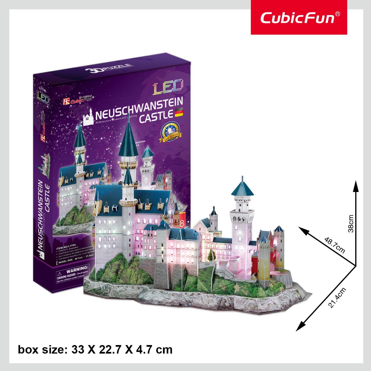3D пазл Замок Нойшванштайн с LED-подсветкой, 128 деталей