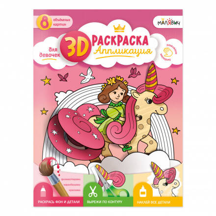 Аннотация: 3D Раскраска-аппликация. Для девочек. МалЯвич. 22х29 см. ГЕОДОМ