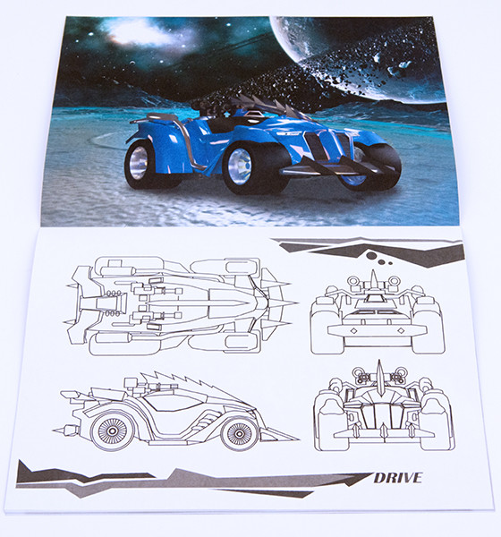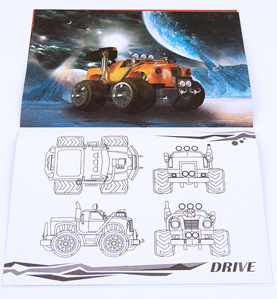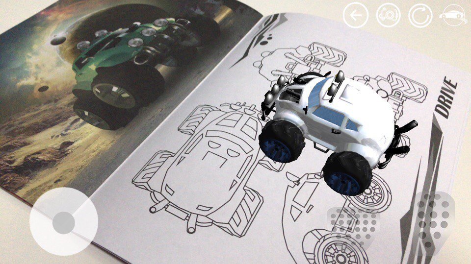 На каждом развороте в раскраске на каждом развороте представлены цветная модель монстр-трака и проекционные виды, которые можно раскрасить и воспроизвести с них движущуюся 3D-модель прямо на столе или у себя на ладони. Нажмите иконку с автомобилем в приложении DEVAR, и Ваша модель перенесется на трассу. Почувствуйте себя участником гонок монстр-траков. Соревнуйтесь с другими авто в скорости и ловкости!