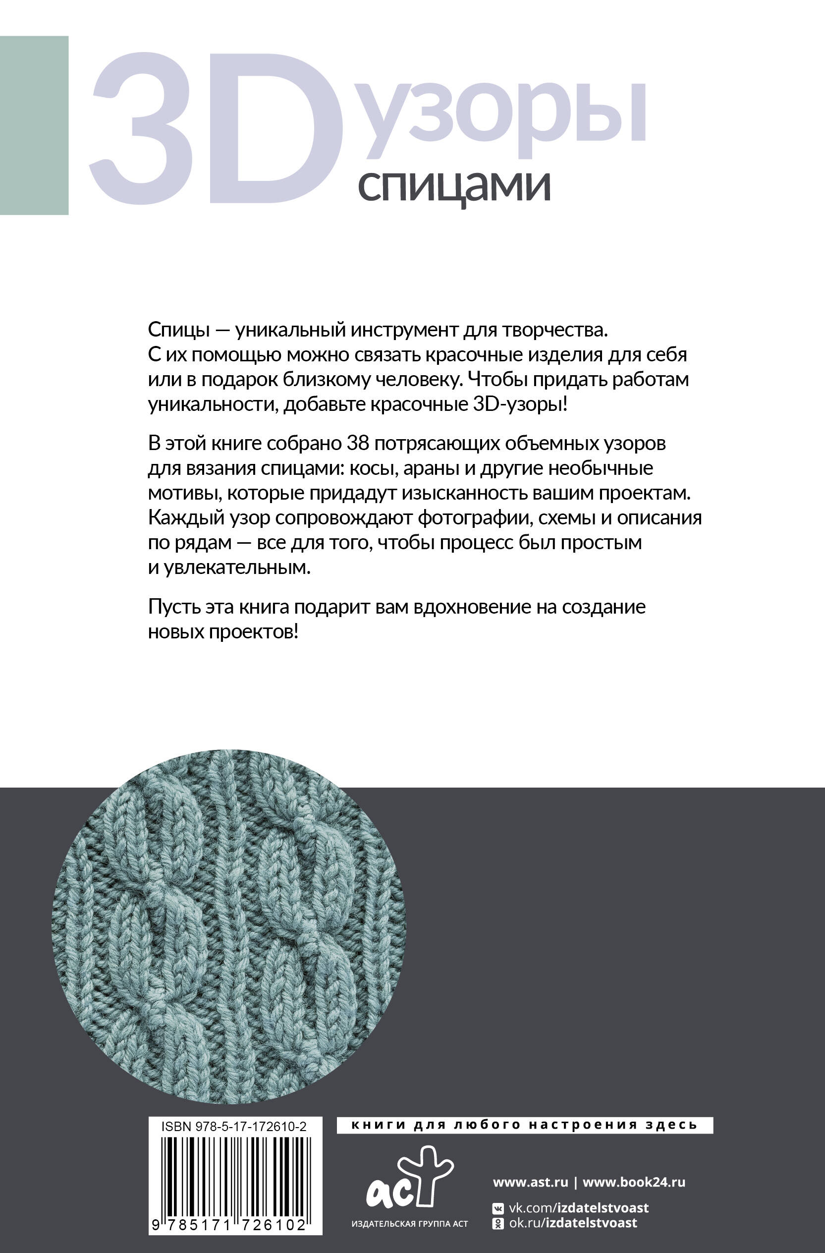Аннотация: 3D-узоры спицами. Эксклюзивная коллекция. 38 узоров
