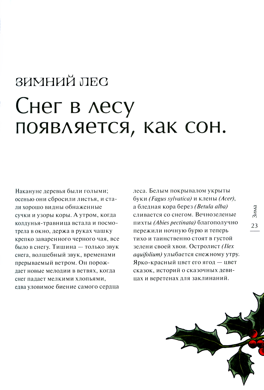 У каждого времени года своя сила и источники вдохновения. Волшебство всегда вокруг нас, нужно только уметь его найти. Колдунья-травница знает язык природы и умеет пользоваться ее дарами. Это ее тайная книга. Она поможет вам наполнить смыслом прогулки на природе и домашние вечера, с чувством прожить каждое время года и сохранить память о нем в маленьких вещицах. Целебные бальзамы зимой, магическая уборка весной, руны из речной гальки летом, сушеные травы осенью... И множество других рецептов, занятий и советов ждут вас на ее страницах. Это будет волшебный год!| Издательство | Манн, Иванов и Фербер |