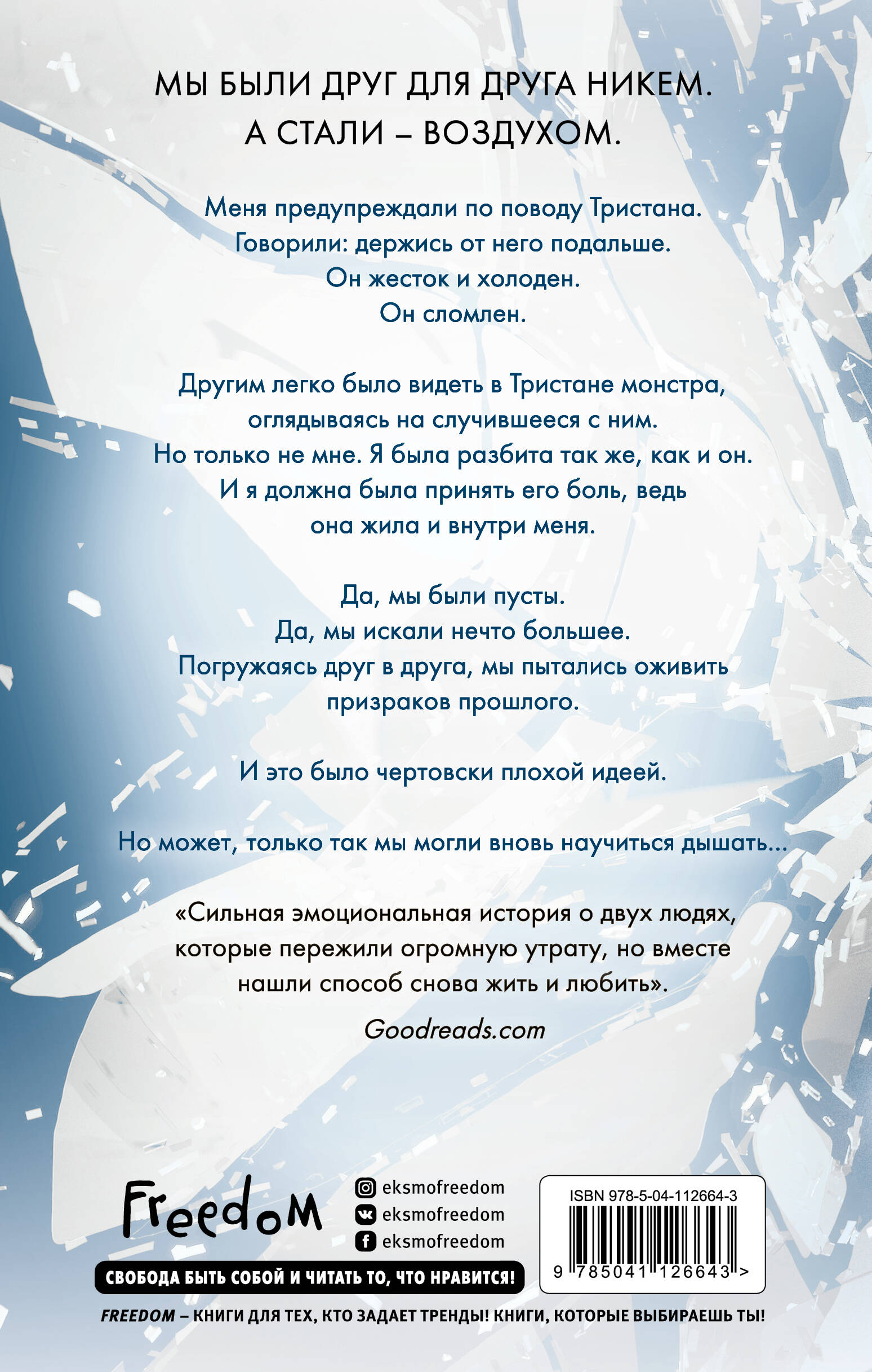 Меня предупреждали по поводу Тристана. Говорили: держись от него подальше. Он жесток и холоден. Он сломлен. Другим легко было видеть в Тристане монстра, оглядываясь на случившееся с ним. Но только не мне. Я была разбита так же, как и он. И я должна была принять его боль, ведь она жила и внутри меня. Да, мы были пусты. Да, мы искали нечто большее. Погружаясь друг в друга, мы пытались оживить призраков пришлого. И это было чертовски плохой идеей. Но, может, только так мы могли вновь научиться дышать… История о непредсказуемой любви, которая случается вопреки планам. Как поразительно тонко пишет Бриттани, ее слог буквально обволакивает сердце, а от страстей в книгах закипает кровь! Книгу наполняют мысли, которые не забываются, а становятся ответами на волнующие вопросы. О чем этот роман? Порой душа скована прошлым. Потерями, обидами, из-за которых не можешь дышать. И в таких случаях ты пробуешь сделать один шаг вперед. Один вдох. Потом еще один. И вот так, маленькими шагами, продвигаешься к свету, пока не окунаешься в него с головой, влюбляясь, расправив крылья. И ради этого мгновения стоит жить. Когда «вчера» уже закончилось, оставив лишь воспоминания, а «завтра» все не наступает. Когда тебя достала рутина и ты не видишь выхода. Когда ты устал притворяться, что все хорошо. Когда ты просто скучаешь в ожидании нового начала. Просто прочти эту чудесную, вдохновляющую историю. «Когда их чувства начинают развиваться, смогут ли они смириться с потерей близких, чтобы полюбить друг друга? Для обоих это будет непростой путь. Особенно когда обстоятельства складываются таким образом, чтобы их навсегда разлучить». - Amazon.com О том, как пережить самое страшное - потерю любимого человека, и как вновь научиться жить. О том, как научиться ценить мгновения, каждую минуту, несмотря на пережитую боль.| Издательство | ООО "Издательство "Эксмо" |