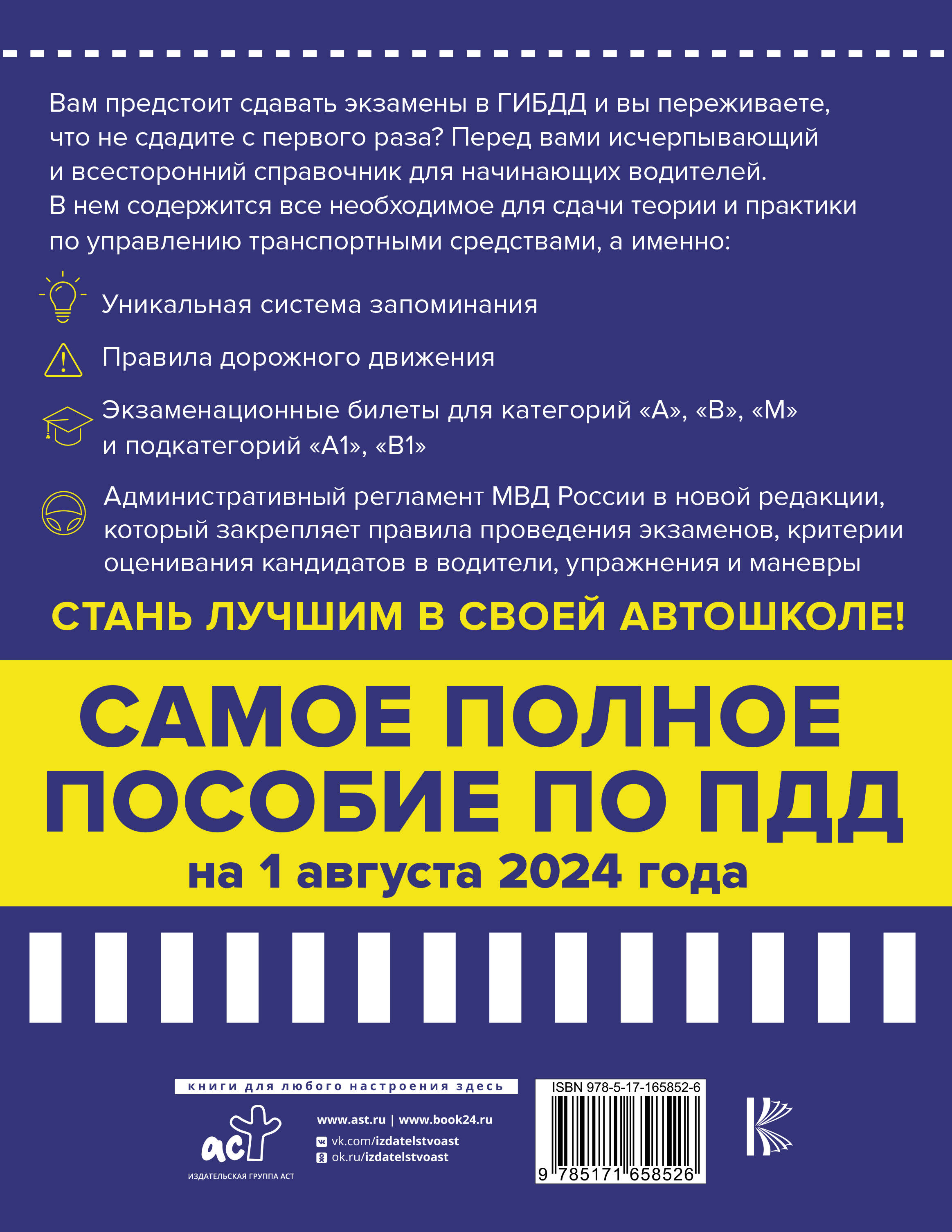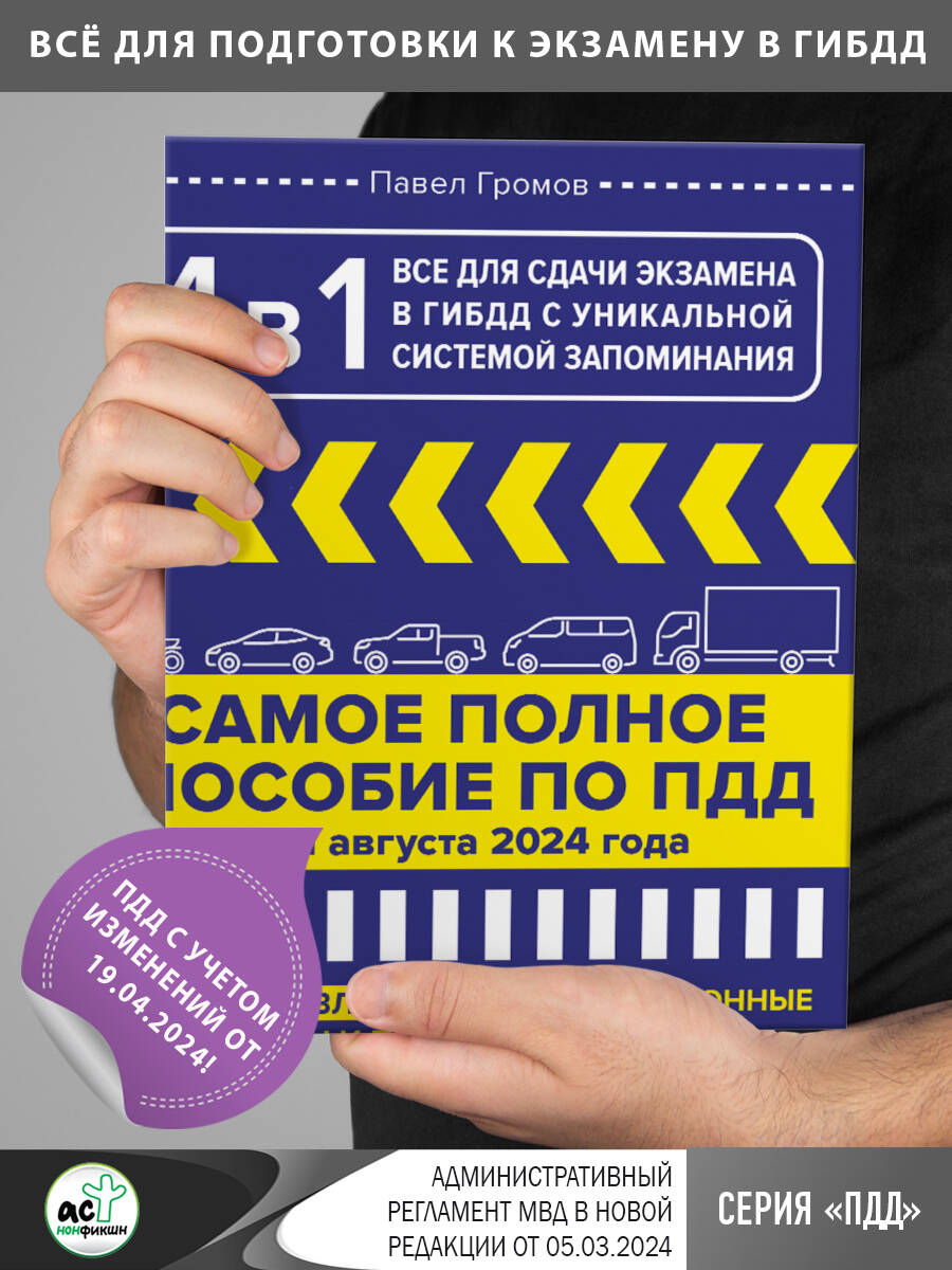 Аннотация: 4 в 1 все для сдачи экзамена в ГИБДД с уникальной системой запоминания. ПДД, экзаменационные билеты и правила проведения экзаменов на право управления ТС на 1 августа 2024 года